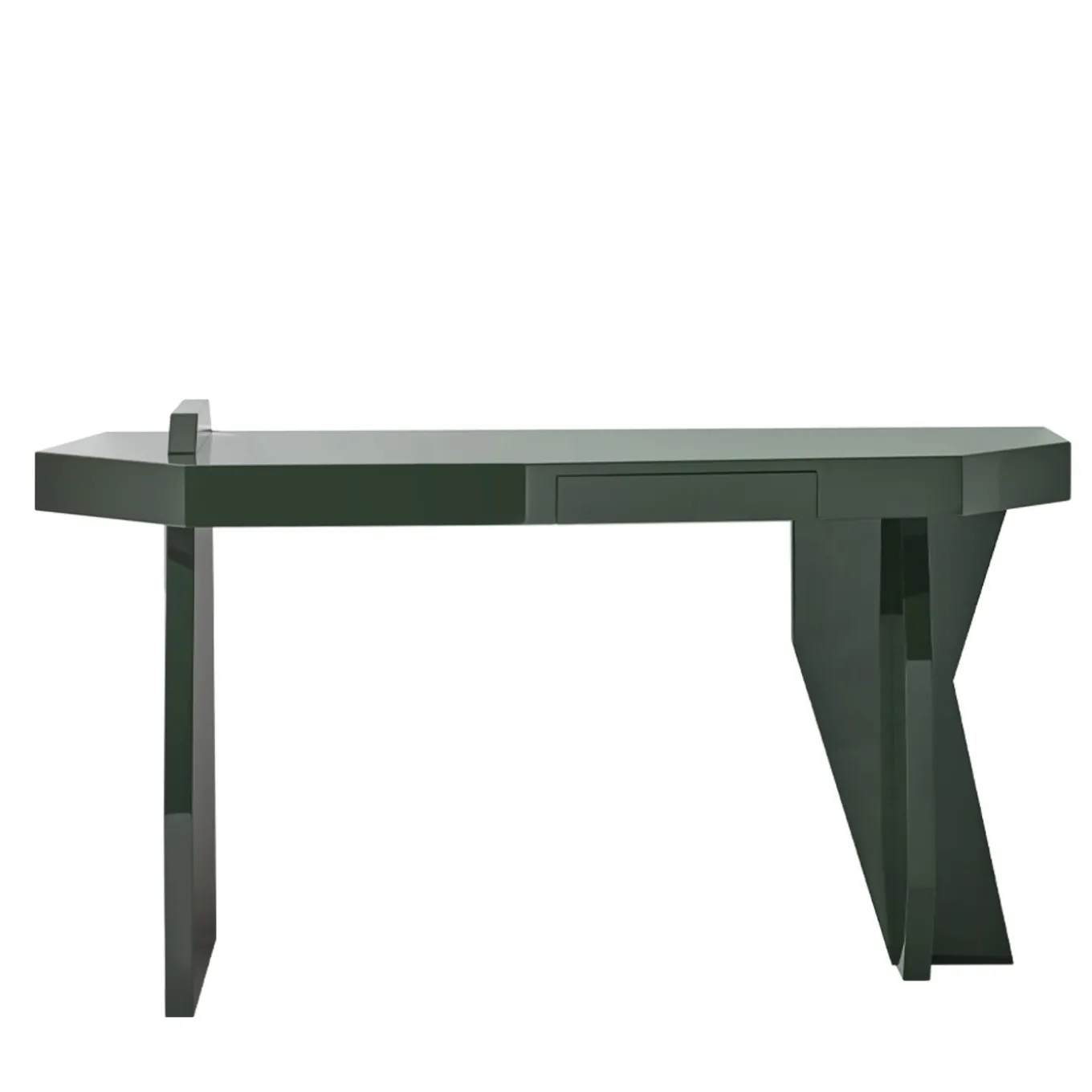 Questa scrivania nasce dalla convinzione che il design debba essere utilizzato per elevare la vita quotidiana e renderla più speciale. Funzionale ed esteticamente accattivante, la sua elegante silhouette è caratterizzata da linee decise e forme scultoree che la rendono la perfetta incarnazione del design artigianale italiano di alta gamma. La sua struttura minimalista in verde scuro è sorprendente ma discreta.