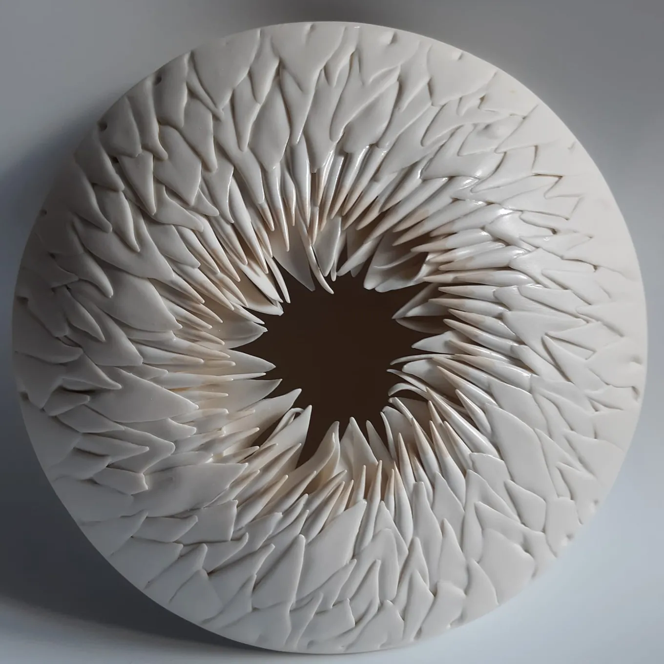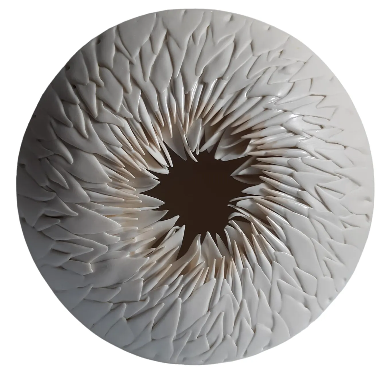 Sea Urchin è una scultura che fa parte della collezione da parete. Questa serie è concepita per creare gruppi di pezzi di diverso diametro, colore e disegno, formando un’installazione di grande effetto visivo per tutti gli spazi. Composizione personalizzata, varietà di colori e gradazioni, finiture in oro e platino. Possibilità di acquistare singole sculture e utilizzarle come centrotavola. Sono realizzate a mano posizionando foglia per foglia la porcellana colorata con grande accuratezza.