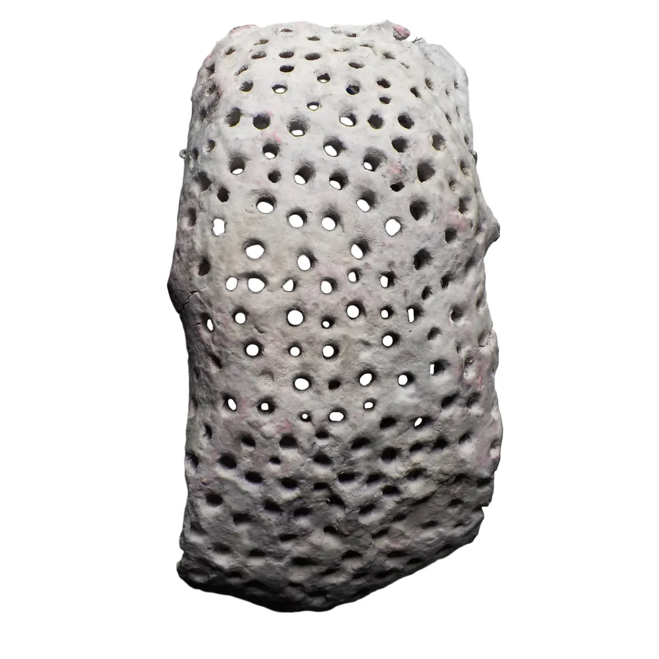Questo lavoro nasce dall’esigenza di rendere tridimensionale l’approccio alla figura umana. Lo studio del corpo umano è iniziato con forme ritagliate in ferro o catrame, successivamente stampate su carta, evolvendosi in sculture tridimensionali in ceramica attraverso la cottura raku o create con resine sintetiche e polvere di marmo. La forma antropomorfa quasi scompare, lasciando il posto a un residuo di fossile organico. La tecnica consiste in una resina sintetica, successivamente dipinta con polvere di marmo e cera.