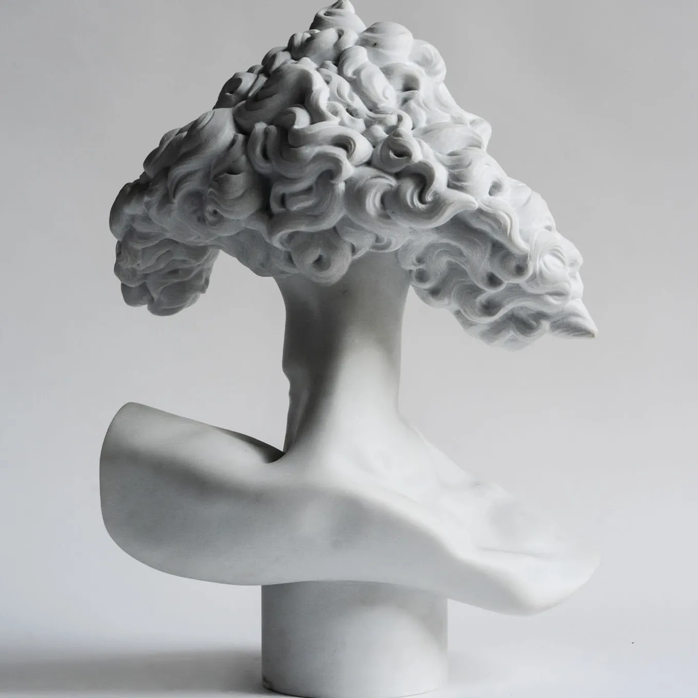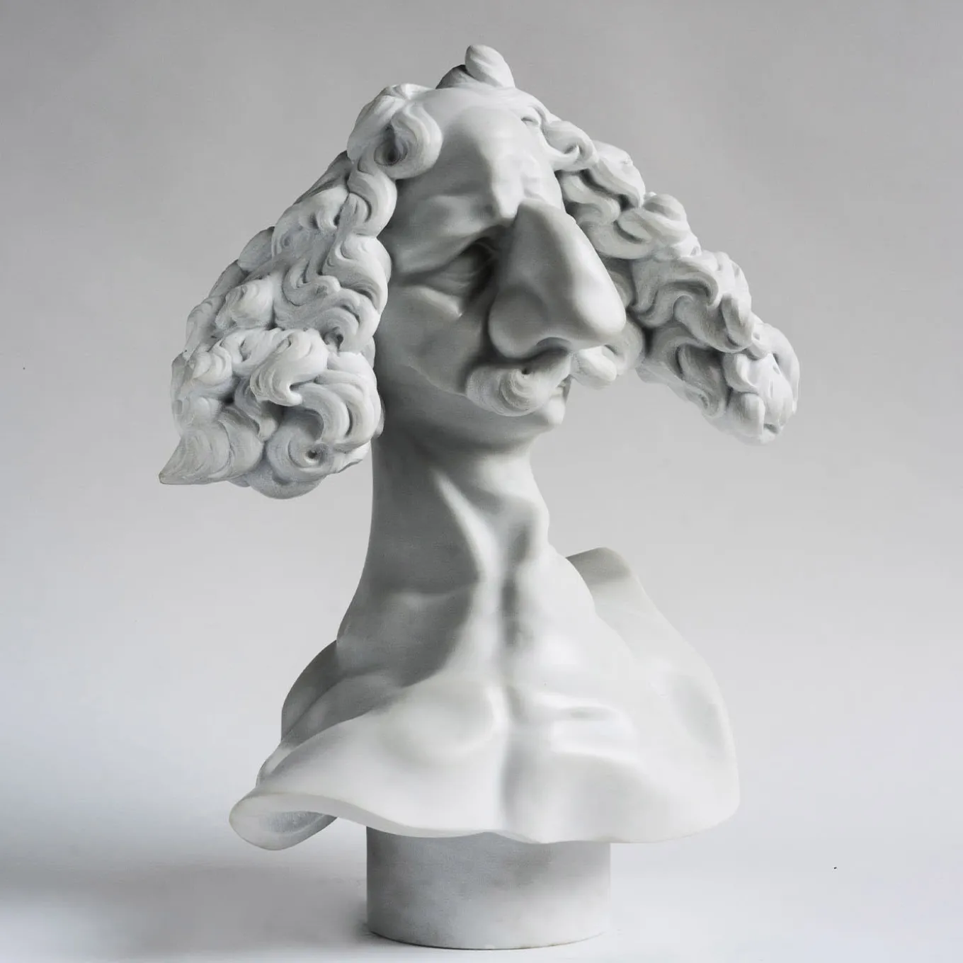 La visione di una società contemporanea storta ha ispirato i tratti deliberatamente deformati di questa scultura dello scienziato Albert Einstein. Questa idea è resa attraverso la magistrale scultura del pregiato marmo bianco di Carrara come se fosse gomma, un’estetica che sembra riflettere la società e che è possibile solo grazie all’impareggiabile livello di maestria dell’artista Matteo Peducci.