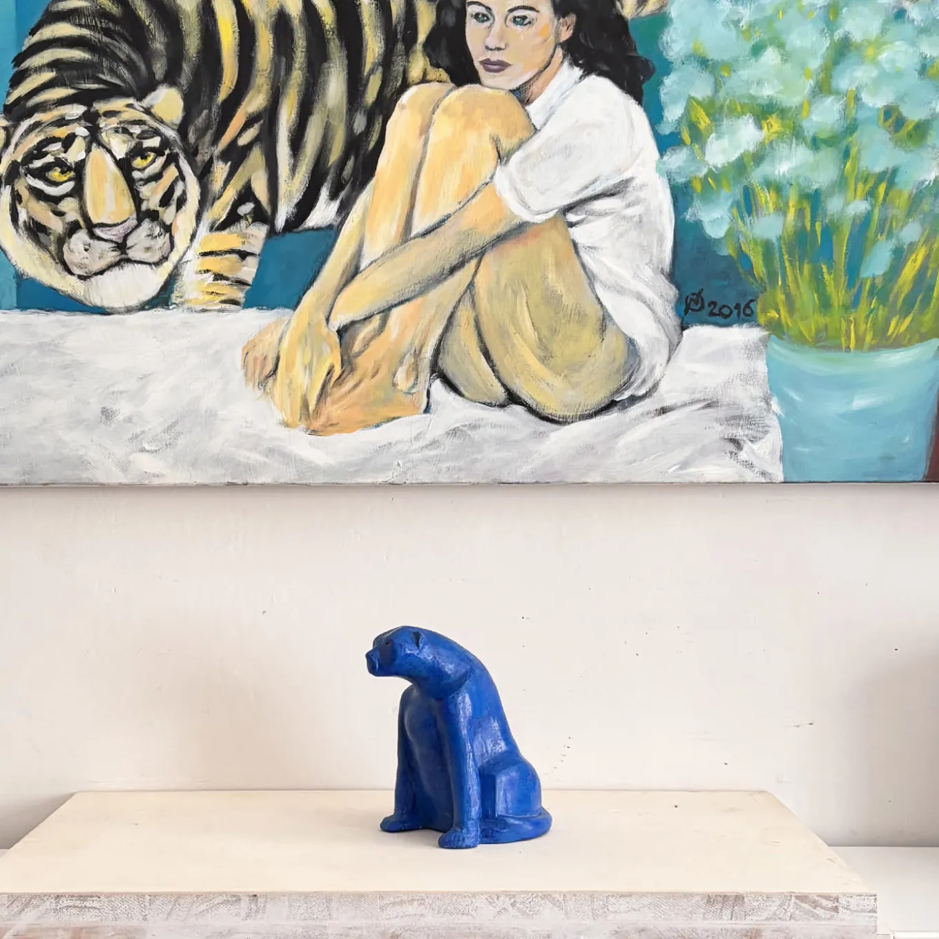 Questa superba scultura fa parte di una serie che raffigura la forza della natura attraverso vibranti ritratti di animali potenti. Questa scultura di pantera in posa di argilla bianca vanta volumi eleganti e una finitura liscia che si ottiene levigando l’oggetto dopo averlo scavato. Daniele Nannini ha realizzato personalmente questo pezzo che viene cotto in forno e solo successivamente dipinto con tempera e rifinito con una speciale cera colorata per conferirgli una superficie lucida.