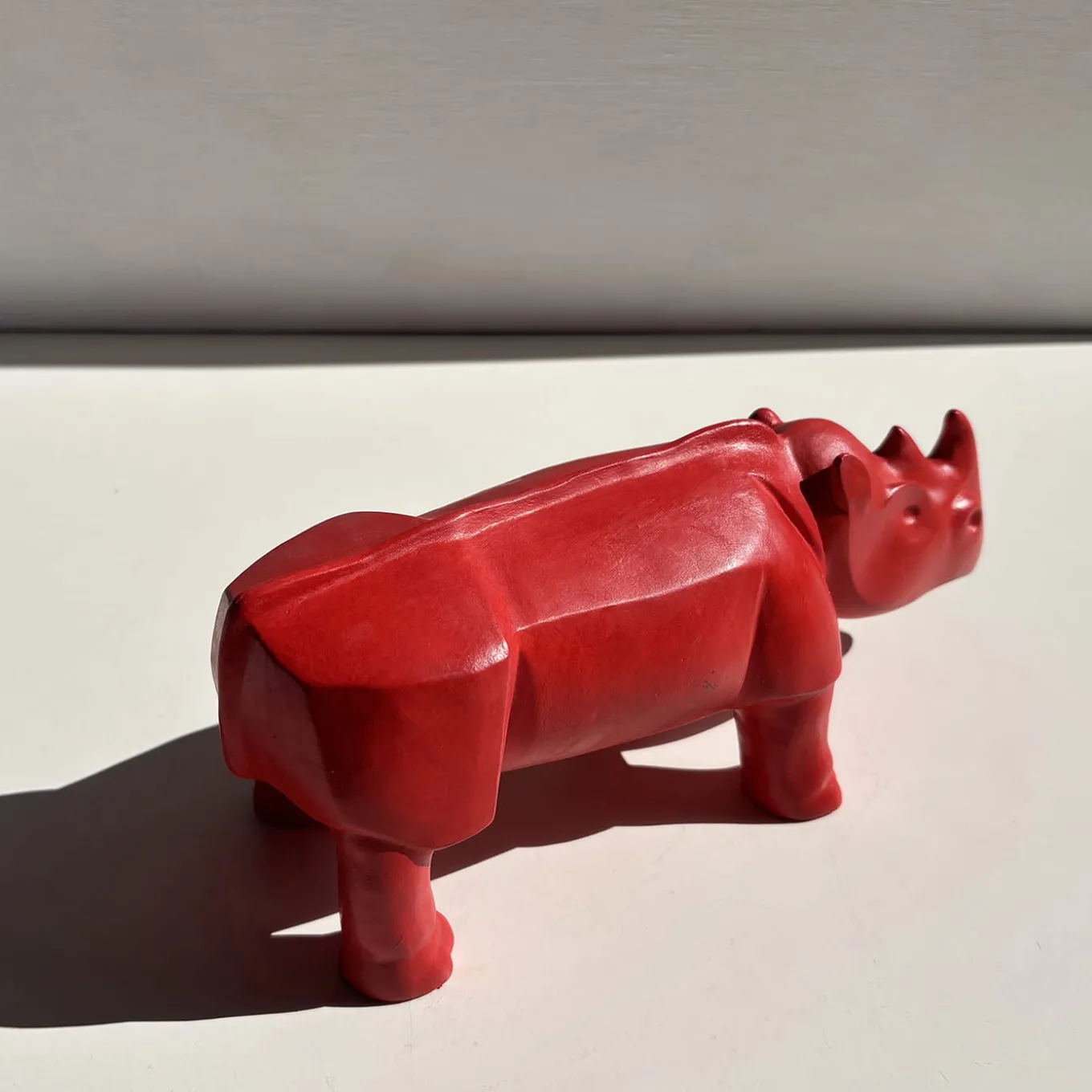 Potente ed elegante, questa scultura di forte impatto visivo raffigura un rinoceronte realizzato in argilla bianca da Daniele Nannini. Dopo una prima fase di essiccazione, il pezzo viene scavato per raggiungere uno spessore totale di 1 cm e successivamente levigato per rivelare volumi decisi. L’oggetto viene poi cotto in forno, dipinto con tempera rossa e rifinito con una speciale cera colorata: l’effetto finale rivela un pezzo sofisticato e unico che emana la forza e la maestosità della natura.
