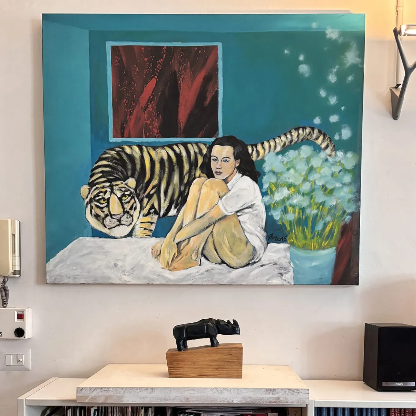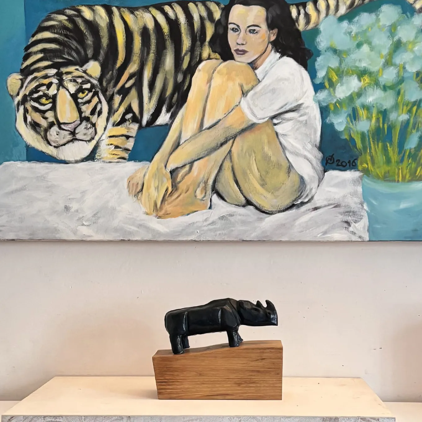 Questa splendida e moderna scultura di Daniele Nannini in argilla rossa raffigurante un maestoso rinoceronte è un’opera d’arte che adornerà splendidamente un interno moderno. Dopo l’essiccazione dell’argilla, il pezzo viene scavato per ottenere uno spessore di 1 cm e successivamente levigato. Elegante e potente, il pezzo viene cotto in forno e dipinto con tempera nera con finitura colorata per un effetto lucido. Poggia su una base in legno massiccio dello stesso peso della scultura.