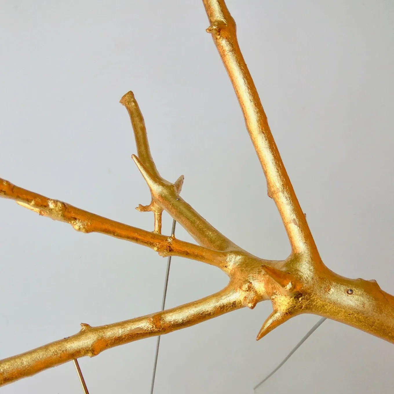 Caratterizzata da un ramo sospeso rifinito in foglia d’oro, questa scultura di Gianfranco Coltella si ispira alle silhouette sottili dello scultore Fausto Melotti e alle zampe slanciate di Salvador Dalì ne “Gli elefanti”. Parte della collezione Sospesi (o fuori terra) di pezzi scultorei ispirati alla natura, il ramo sospeso simboleggia l’esistenza sradicata del migrante.