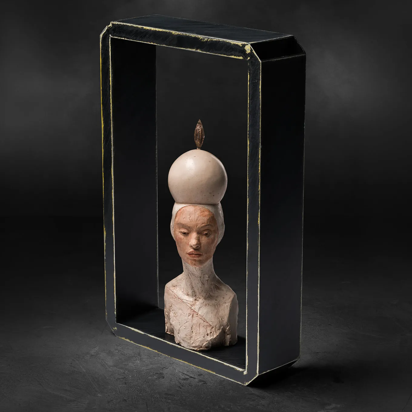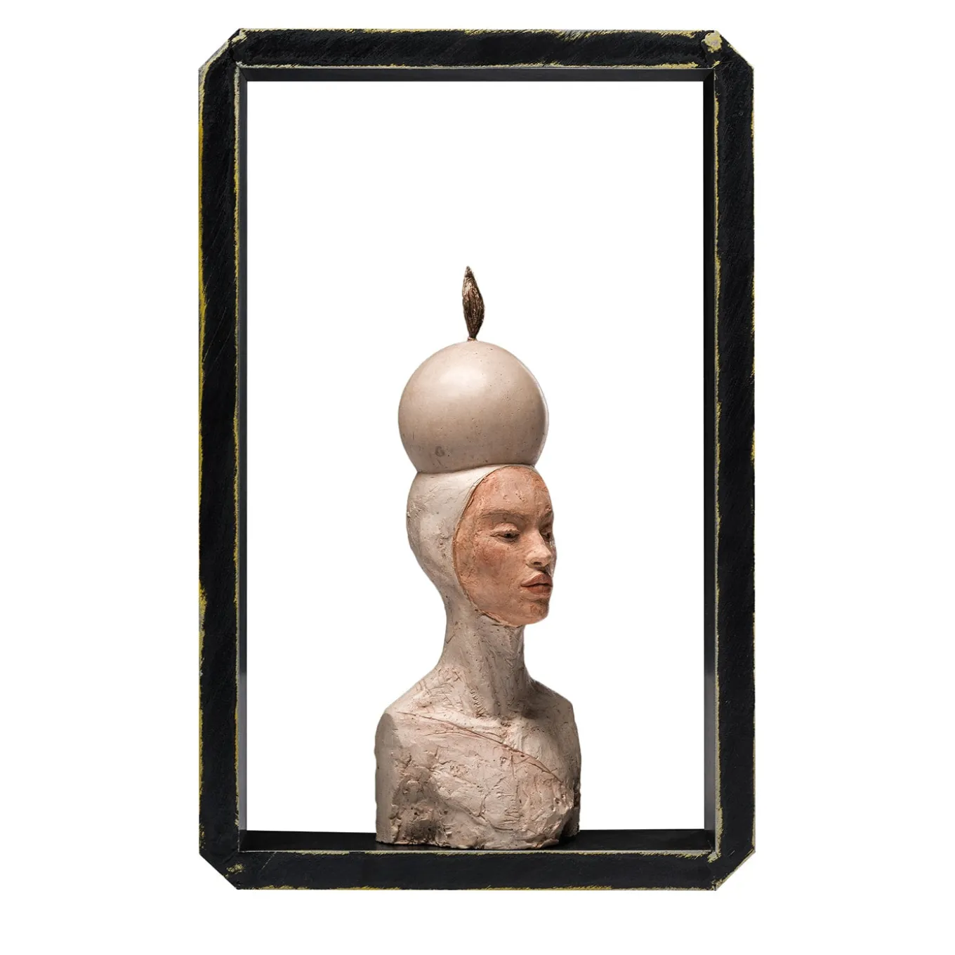 “L’Altare della Papessa” è un punto di riferimento per esplorare i temi dell’uguaglianza, dell’emancipazione femminile e della ridefinizione dei ruoli nella società contemporanea. Questo pezzo unico, realizzato con una miscela di pigmenti e ossidi, combina elementi in bronzo con idroresina atossica e lolla di riso. Il simbolo della vulva sul copricapo è in bronzo, realizzato con fusione a cera persa. Adatto a qualsiasi ambiente, può essere montato a parete o appoggiato su una superficie. Il pezzo unico comprende una cornice in alluminio.