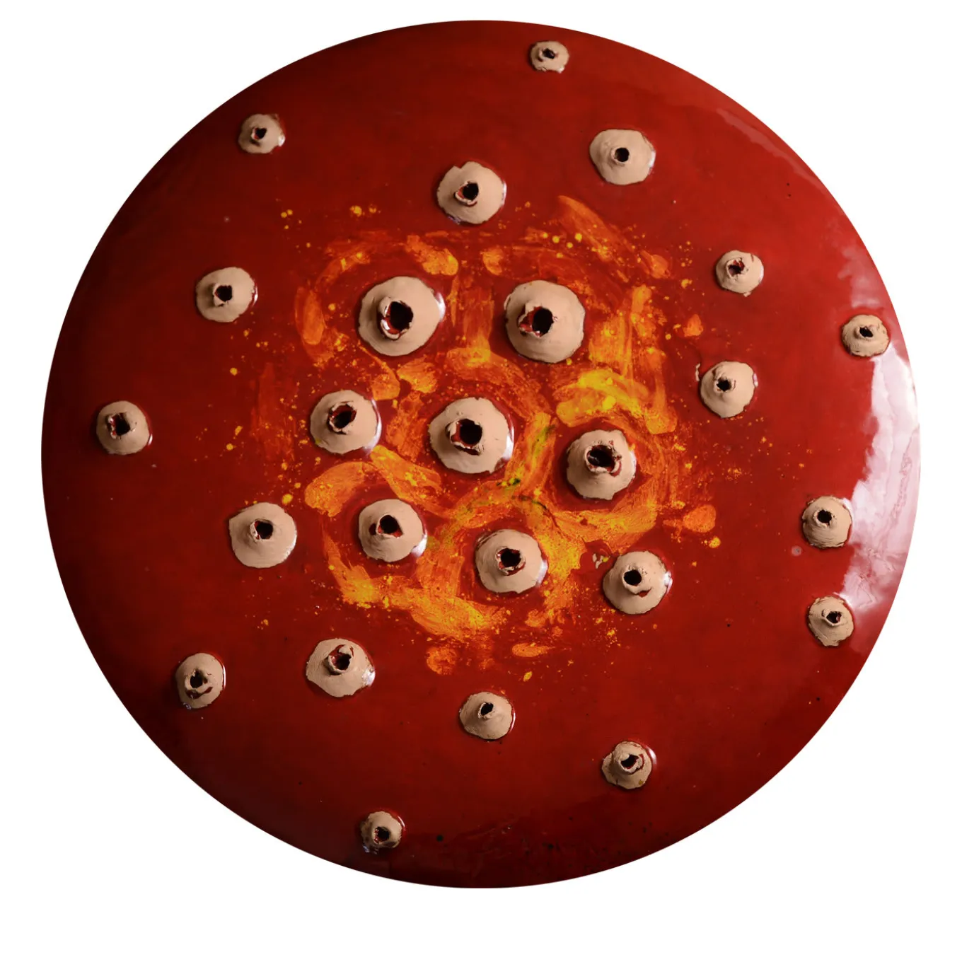 Questa suggestiva scultura rotonda fa parte della serie Magmalia ed è stata realizzata a mano in terracotta con la tecnica dell’arrotolamento e poi ricoperta di ricchi smalti e ossidi. A causa della sua natura artigianale, le riproduzioni di questo pezzo saranno simili ma non identiche.