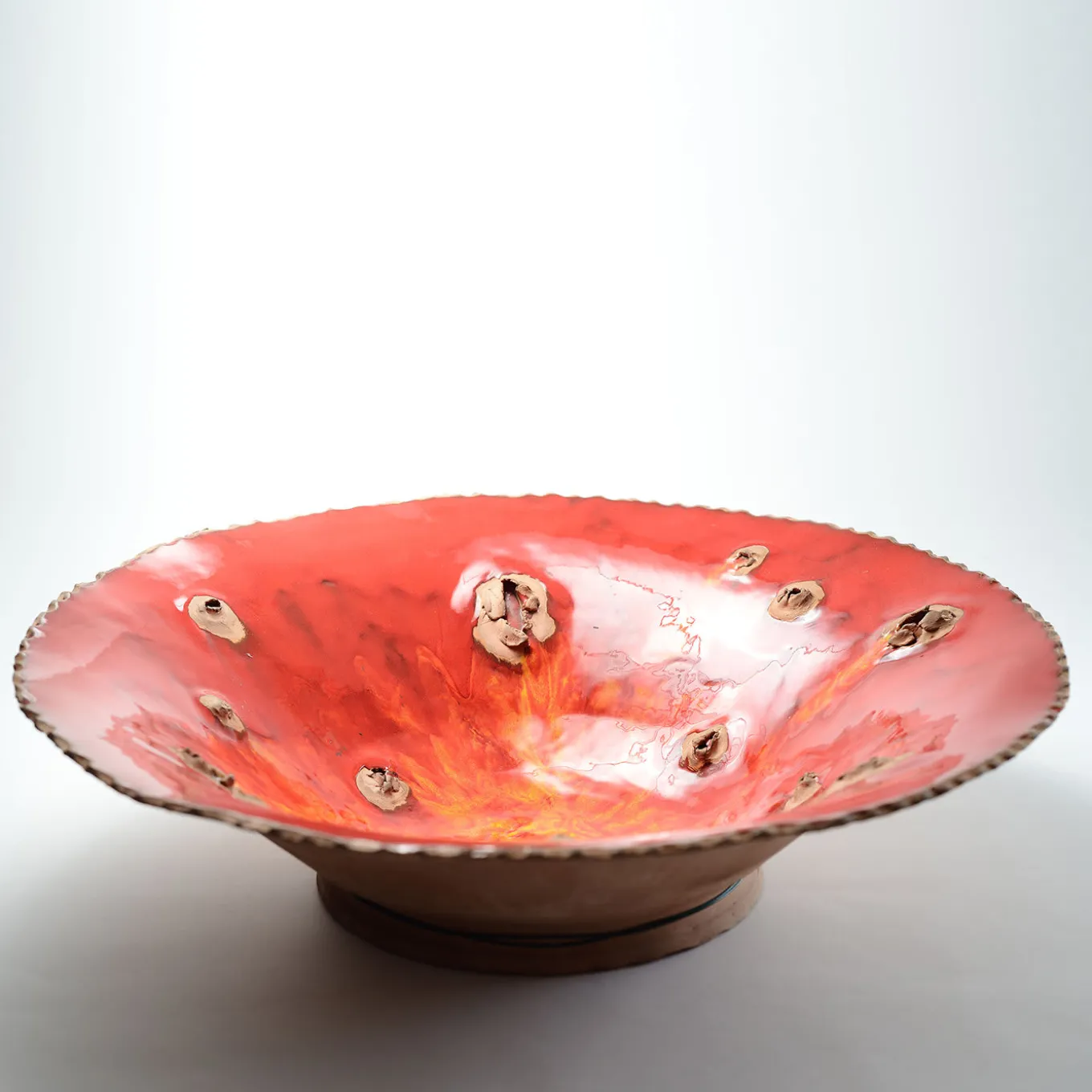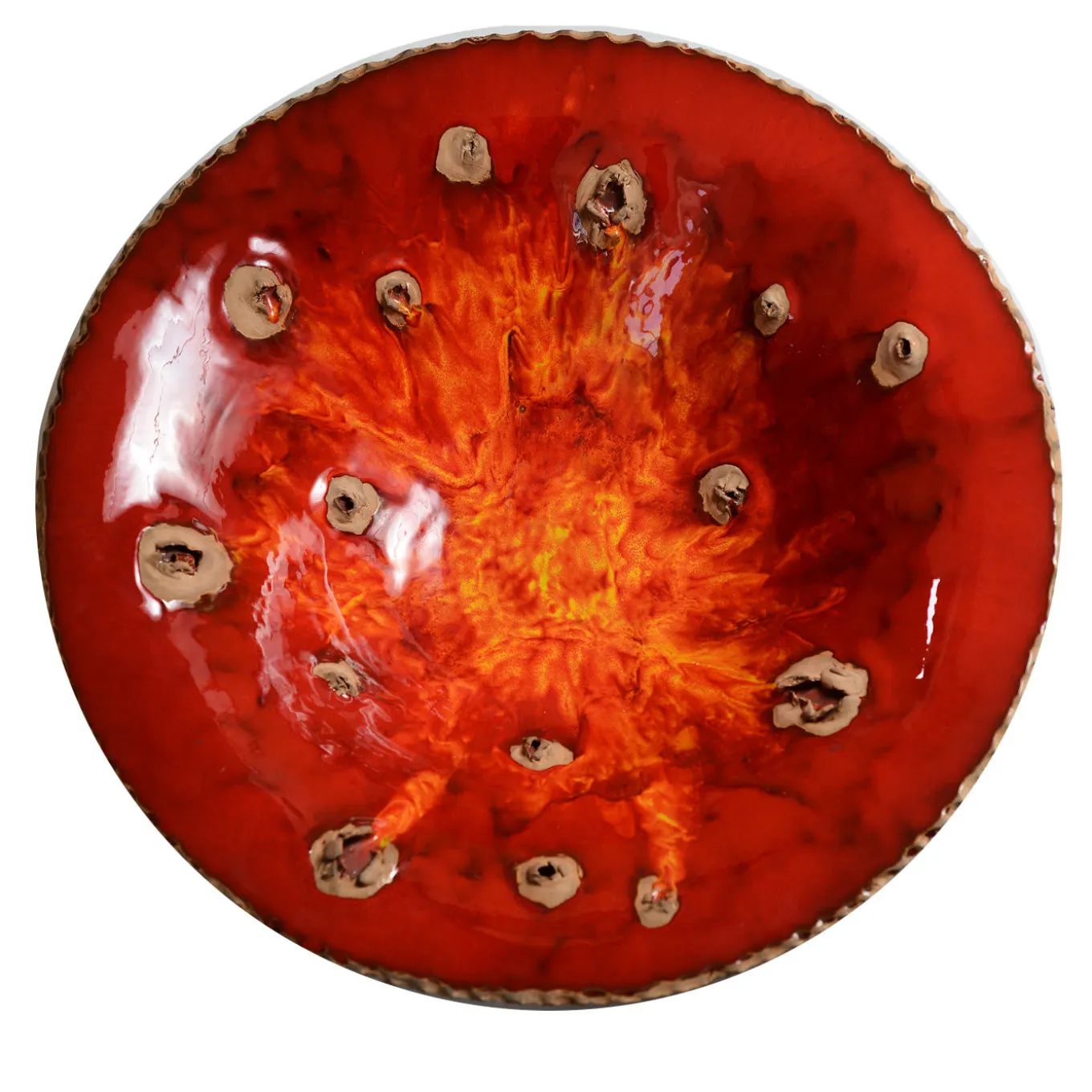 Questa suggestiva scultura rotonda fa parte della serie Magmalia ed è stata realizzata a mano in terracotta con la tecnica dell’arrotolamento e poi ricoperta di ricchi smalti e ossidi. A causa della sua natura artigianale, le riproduzioni di questo pezzo saranno simili ma non identiche.