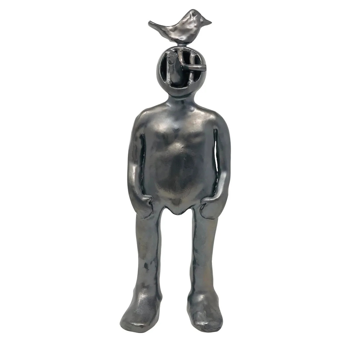 Appartenente alla Collezione Big Humans, questa scultura in maiolica raffigura un palombaro immobile con un gabbiano appollaiato sulla testa e un altro che fa capolino da sotto la maschera. Il processo di lavorazione manuale prevede le fasi di stampaggio e finitura, seguite da un’incavatura finale del pezzo per evitare che si rompa durante le due cotture in forno. La smaltatura satinata viene applicata dopo la prima cottura e fissata nella cottura finale a 930°C. Le personalizzazioni sono disponibili su richiesta, chiedendo al Concierge.
