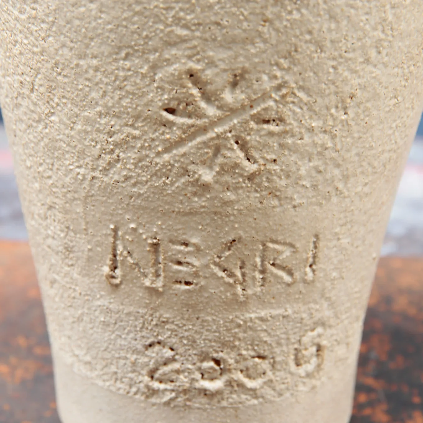 Questa squisita scultura in ceramica è realizzata con la tecnica dell’arrotolamento e cotta a 2190 gradi Fahrenheit, quindi rifinita con smalti a base di cenere. L’interno è cavo, come un vaso, e la base è in ferro. Questo pezzo unico rappresenta un portatore d’acqua e simboleggia la sacralità dell’elemento acqua.