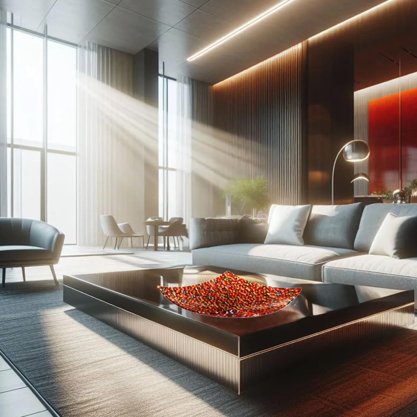 Questo splendido centrotavola in vetro è uno spettacolo per la sua bellezza e originalità. La forma geometrica a diamante è realizzata con centinaia di piccole tessere multicolori, che creano un mosaico dalle tonalità vibranti. Il colore rosso dominante è completato da tonalità accuratamente scelte per creare un effetto armonioso e luminoso. Ogni tessera è realizzata meticolosamente con le tradizionali tecniche di lavorazione del vetro di Murano, tramandate per secoli dagli artigiani veneziani. Dimensioni e colori sono personalizzabili su richiesta.