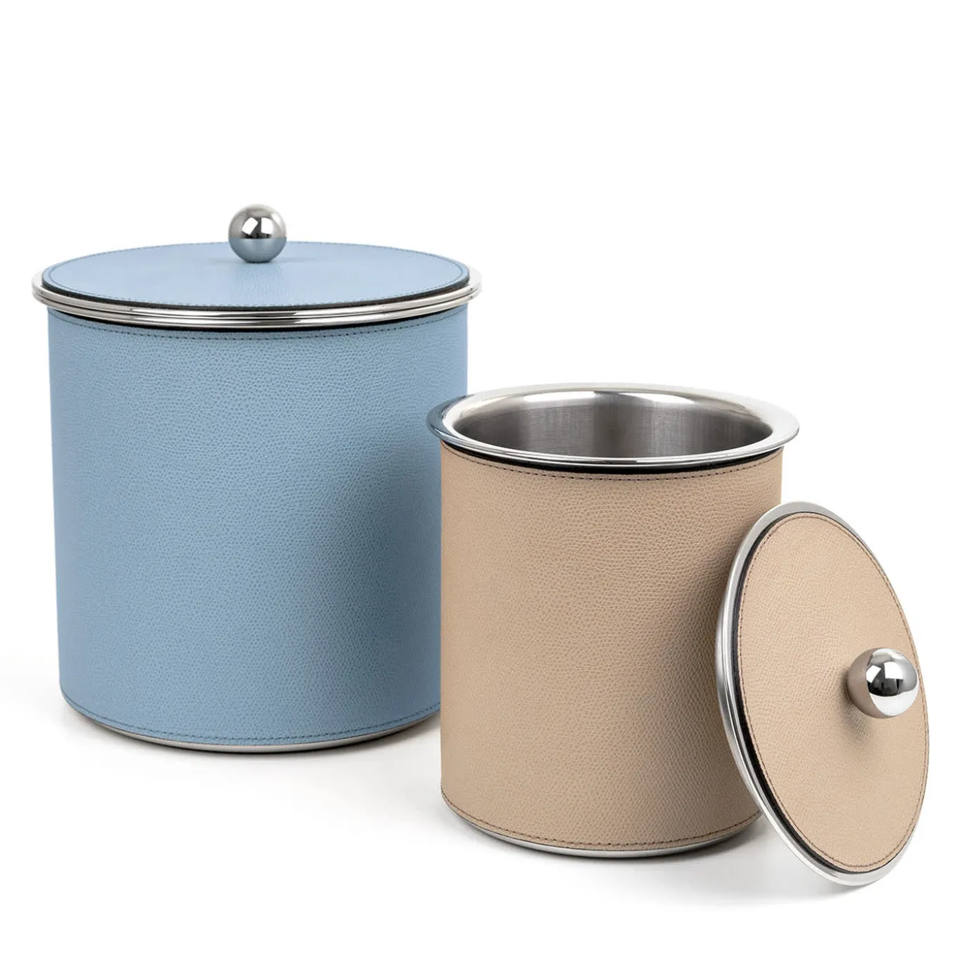 Realizzato in acciaio inossidabile lucido, il secchiello per il ghiaccio Axel vanta un design elegante, ulteriormente perfezionato dal rivestimento in pelle beige. Dotato di un colino interno per il ghiaccio, scarica l’acqua in eccesso lasciando solo il ghiaccio solido. Perfettamente abbinato agli altri accessori della collezione Pinetti, è un complemento essenziale per creare la tavola ideale per eventi e feste in famiglia. Disponibile in diverse dimensioni e in vari colori. Contattare il concierge per maggiori informazioni.