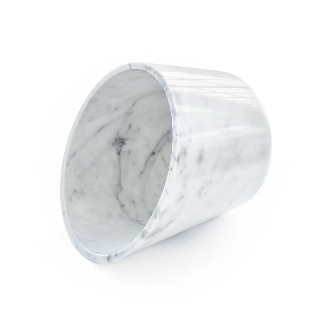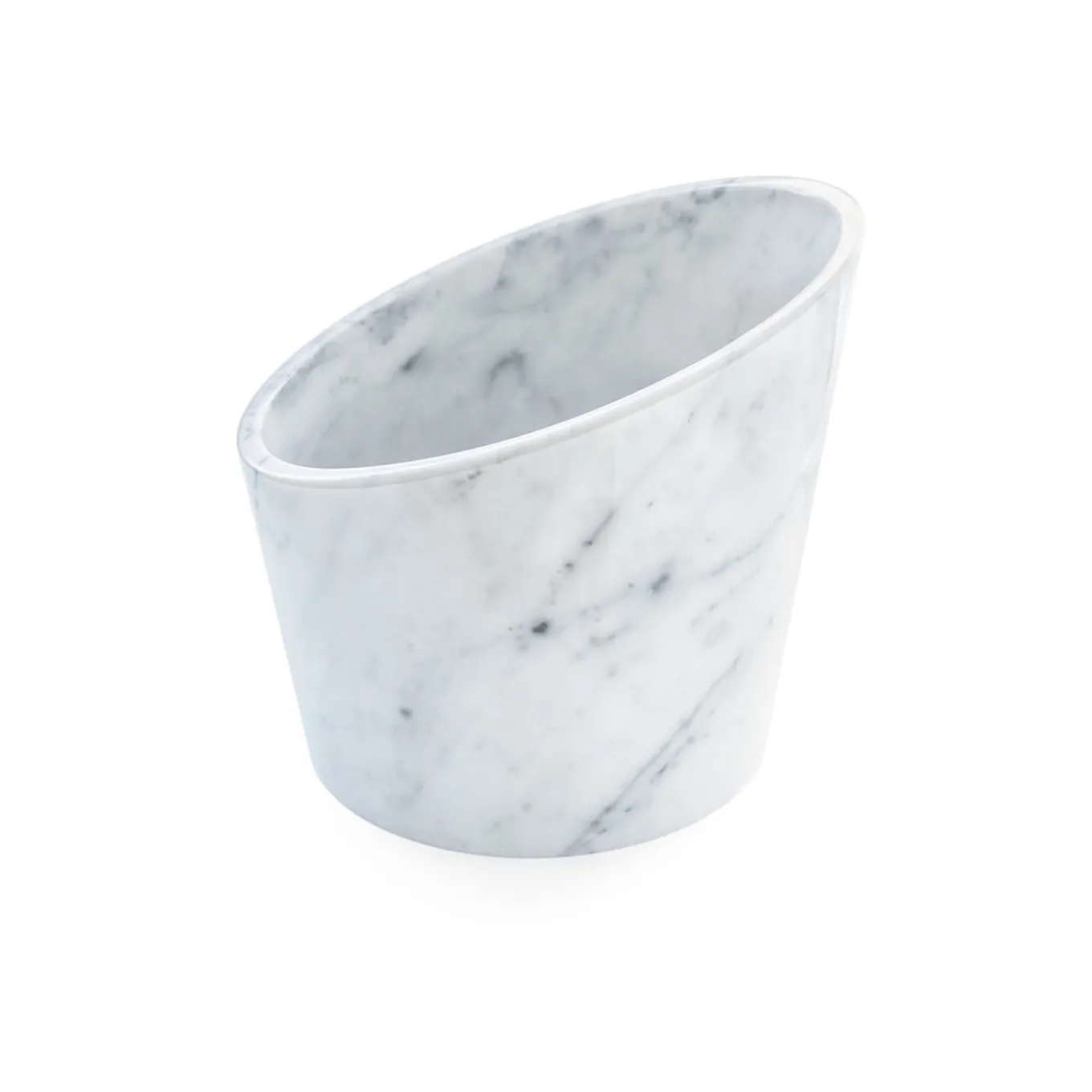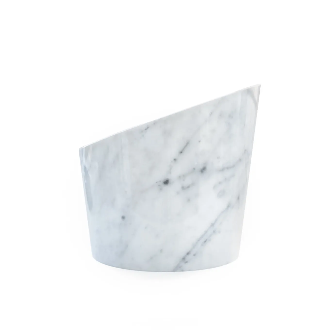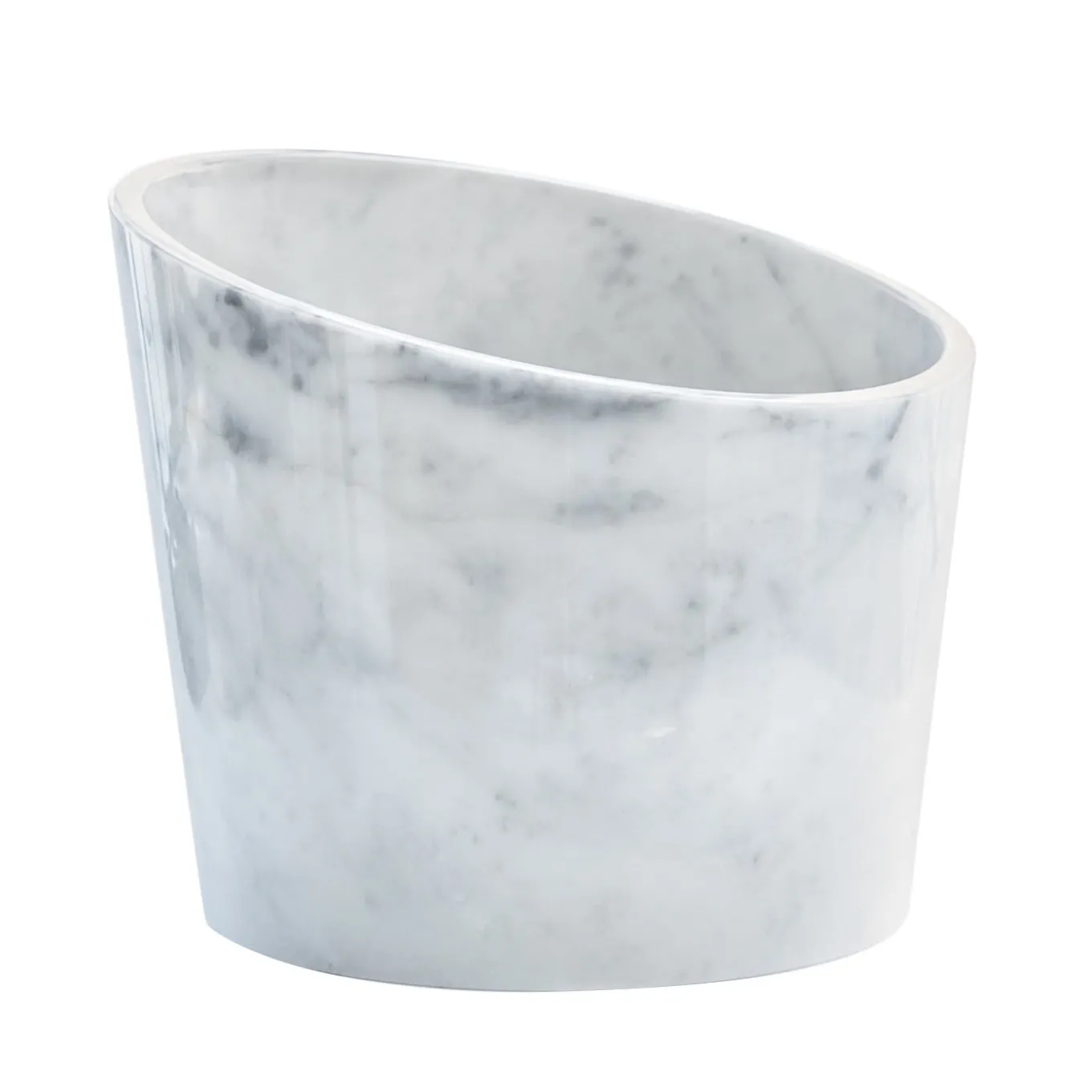 Questo raffinato secchiello per il ghiaccio realizzato in marmo bianco è uno splendido modo per celebrare un’occasione speciale. La pietra, con le sue venature grigie sullo sfondo chiaro, conferisce un lusso unico ed evoca l’opulenza, mentre la forma minimalista, con la bocca tagliata in diagonale e la silhouette lineare, crea un’atmosfera elegante e contemporanea. Questo pezzo, che pesa 5,2 kg e può contenere fino a 4 bottiglie, può essere abbinato ad altre stoviglie di Fiammetta V nello stesso marmo per un look coeso.
