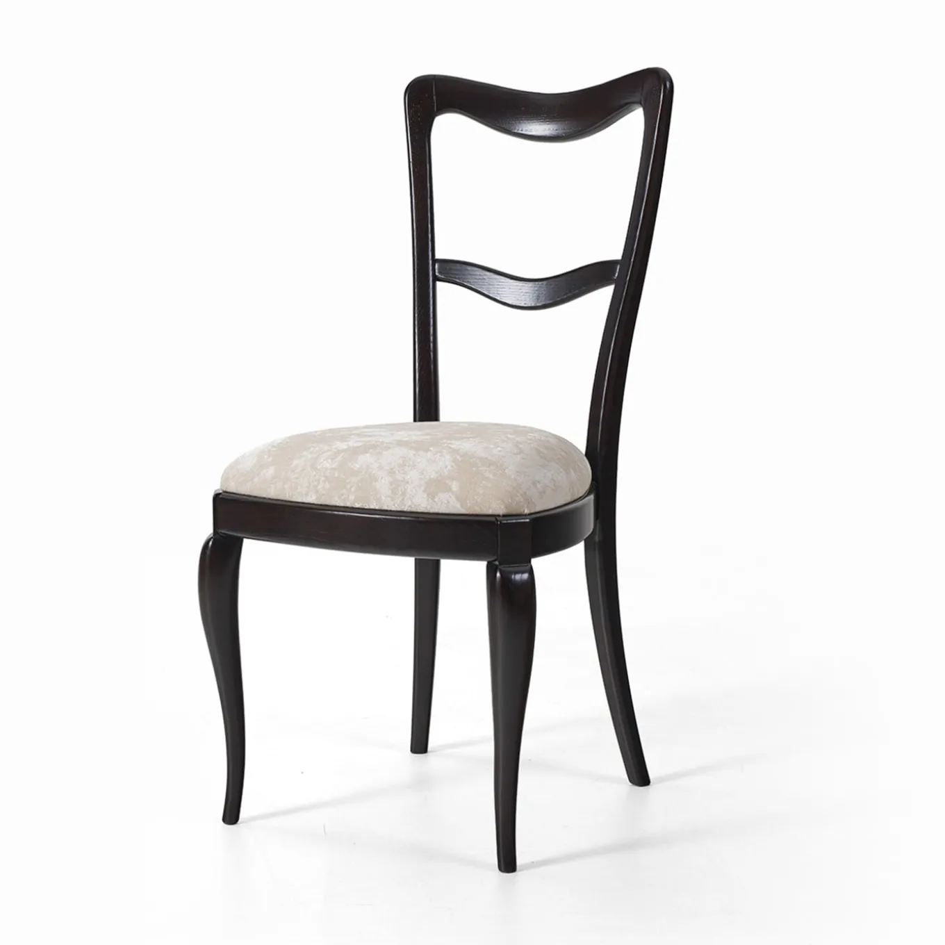 La sedia Babbol affascina con le sue linee sinuose e la ricca tinta ebano. La seduta, rivestita in tessuto, offre un comfort impareggiabile e un tocco di raffinatezza. Perfetta per impreziosire ambienti raffinati e sofisticati.