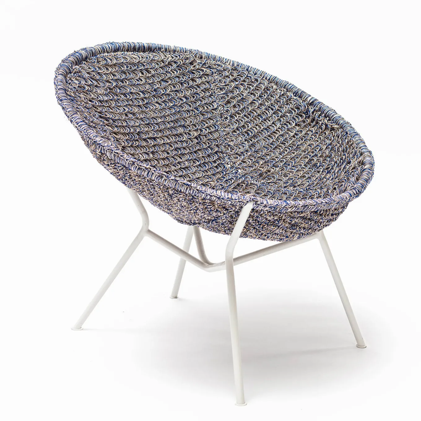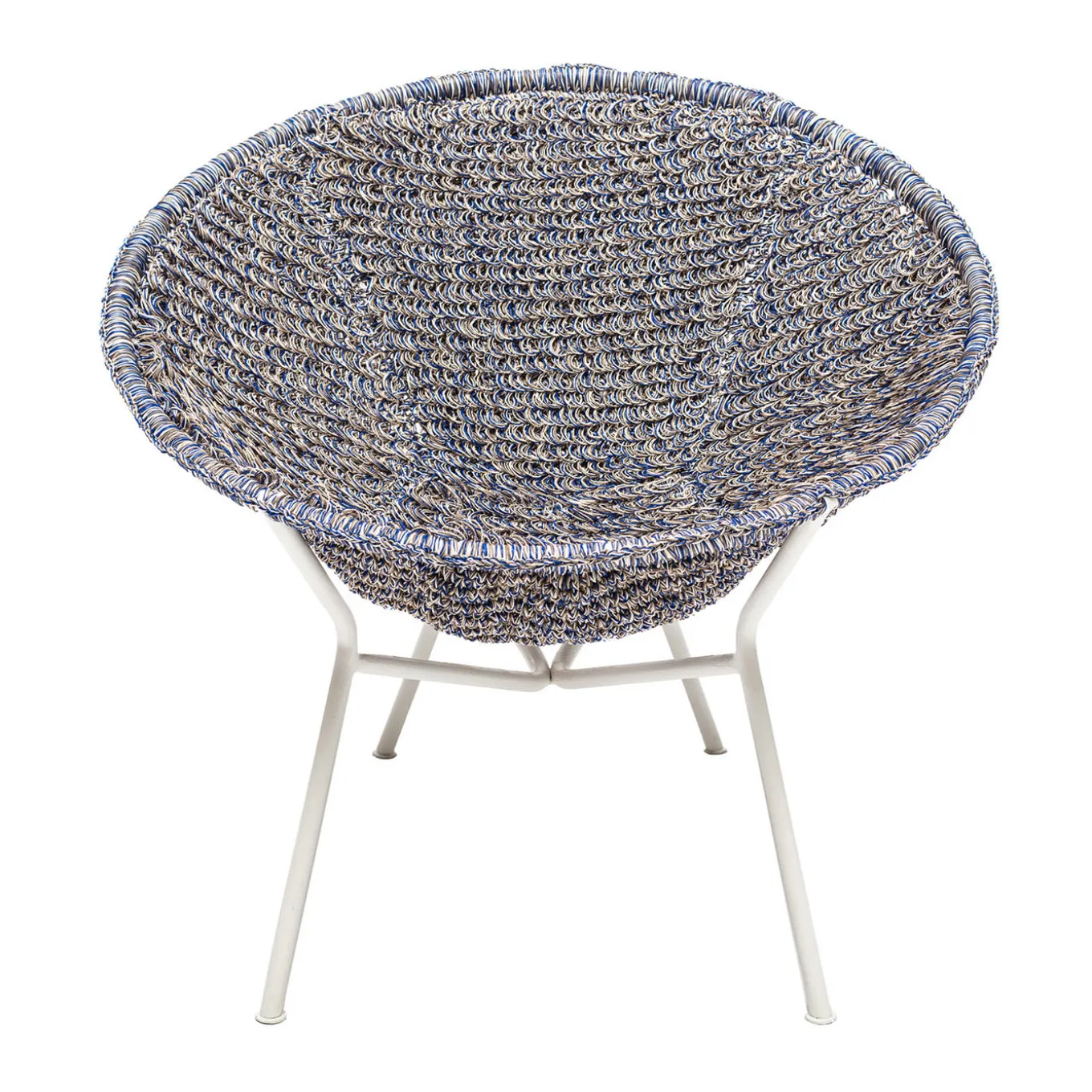 Design ispirato alle sedute da esterno con struttura metallica circolare, solitamente decorate in vimini o paglia, in voga negli anni Cinquanta. La reinterpretazione di Craafts prevede una lavorazione estremamente elaborata del pannello della seduta che contrasta con la semplicità strutturale del tubo metallico verniciato a polvere. La lavorazione all’uncinetto del filo di PVC è eseguita da esperti artigiani e garantisce una comoda seduta impermeabile e rilassante per uso esterno.
