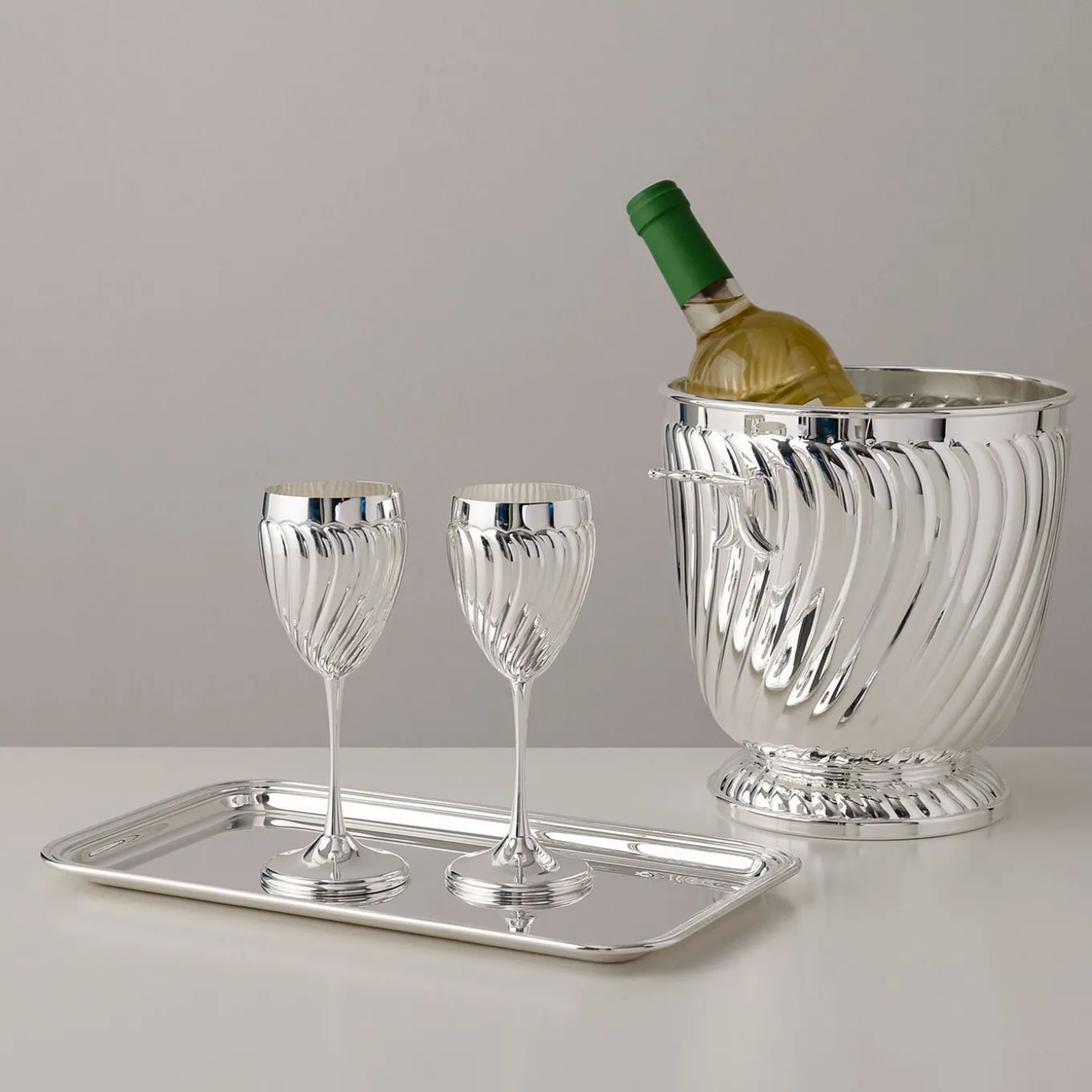 Set di 2 calici da vino Twisted portano un raffinato dinamismo alle vostre cene, grazie alla loro lavorazione a cesello, un classico contemporaneo che si abbina naturalmente a tavole tradizionali e moderne. La brillantezza dell’argento placcato e le linee dinamiche illuminano la tavola con riflessi e giochi di luce ipnotici, rendendoli perfetti per cene indimenticabili. Realizzati a mano in Italia secondo la tradizione dell’alta argenteria, con un’attenzione meticolosa in ogni fase, garantiscono una qualità duratura e un prestigio senza tempo. Disponibili anche in una dimensione più grande, pensata per l’acqua; per maggiori informazioni, contattare il Concierge.