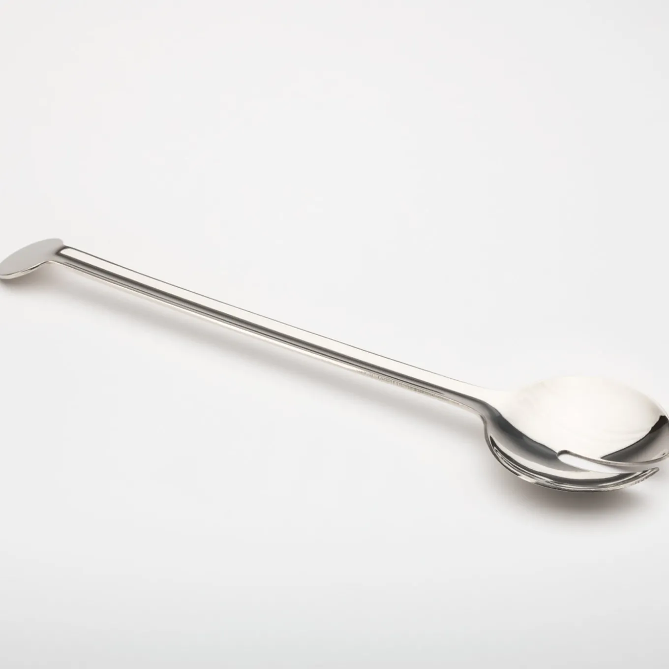 Volumi puri in tutto il loro fascino immediato e senza sforzo, realizzati per uno scopo preciso: servire l’insalata con un pizzico di lusso. Questo set di posate per insalata è realizzato in acciaio inossidabile lucidato e comprende una forchetta e un cucchiaio che condividono un profilo identico con cerchi inclinati che sostengono la silhouette quando vengono appoggiati sul tavolo, mentre solo la forchetta presenta i tre tagli funzionali.