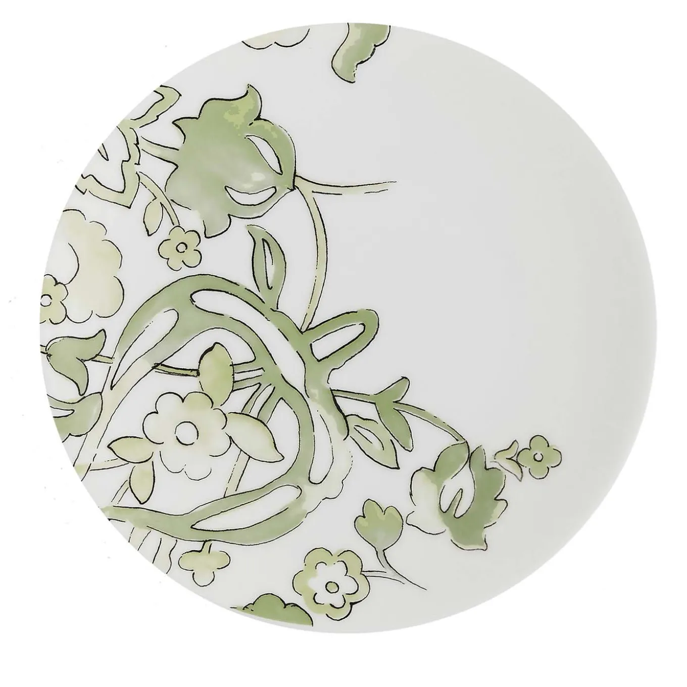 Espressione audace di un servizio da tavola contemporaneo, questo set di piatti da dessert è definito da un design sinuoso e da un’applicazione omogenea dei colori. Realizzato in porcellana bianca, il motivo floreale di questi piatti è disegnato a mano con linee nere e successivamente colorato con una vibrante tonalità verde. Le sottili imperfezioni della tonalità e del disegno sono il segno distintivo di un processo di lavorazione unico, fatto a mano. Il piatto misura 19 cm.