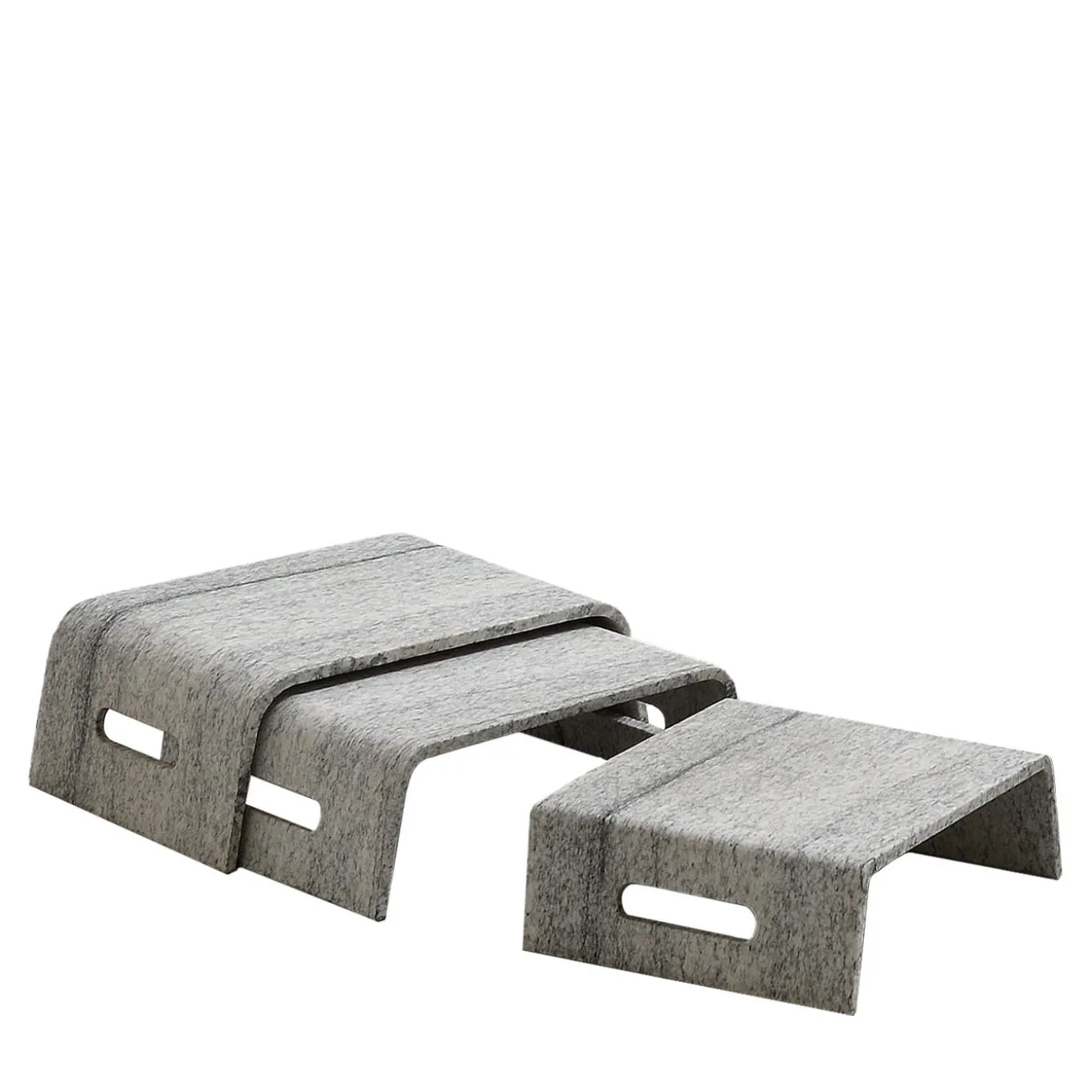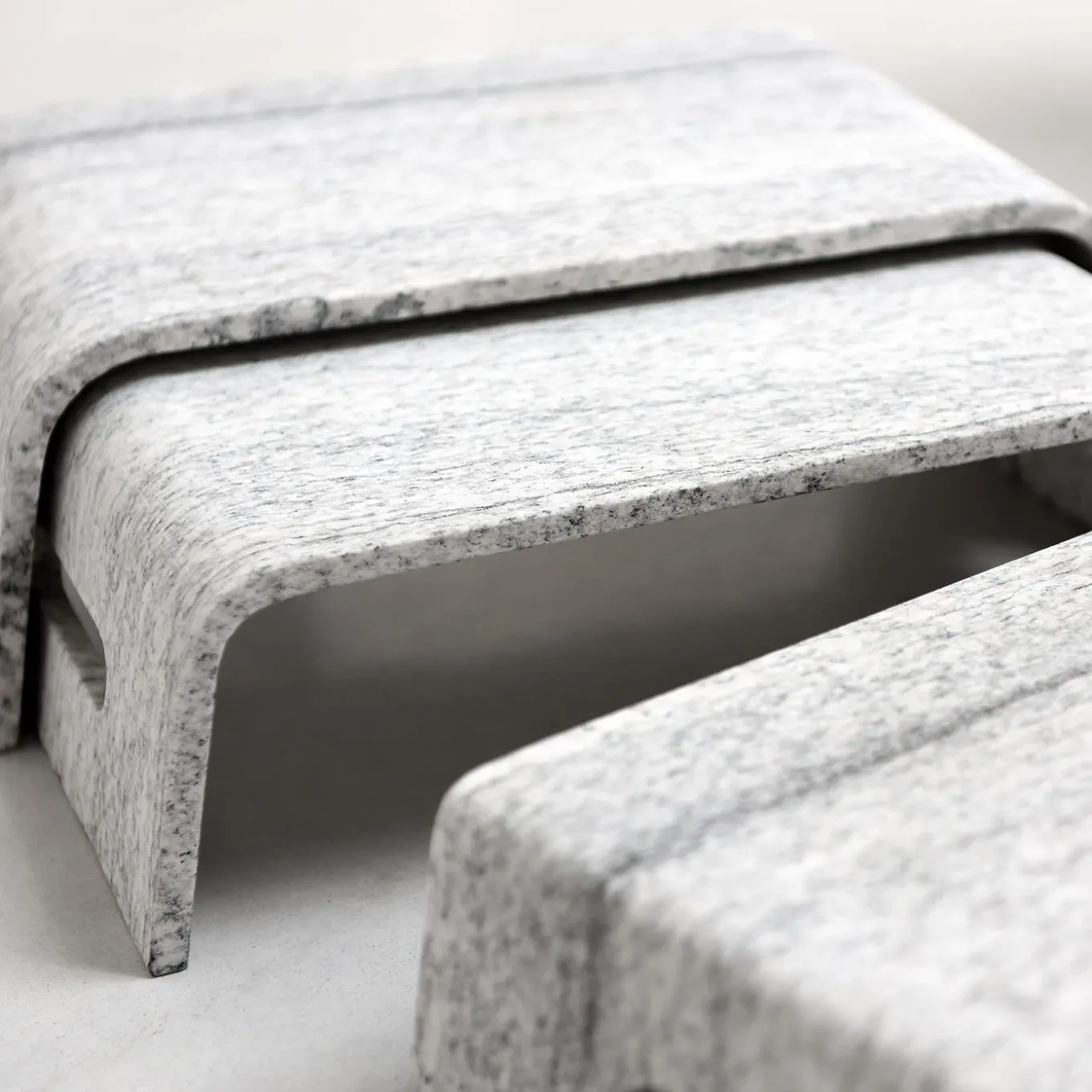 Uno squisito set di tre tavolini o plateaux impilabili per ravvivare un interno contemporaneo con una raffinatezza minimalista ma sublime, ogni pezzo è abilmente realizzato a mano in granito Duke White seguendo procedure sostenibili. Un design originale di Testi, che mette in mostra un singolare fascino naturale.