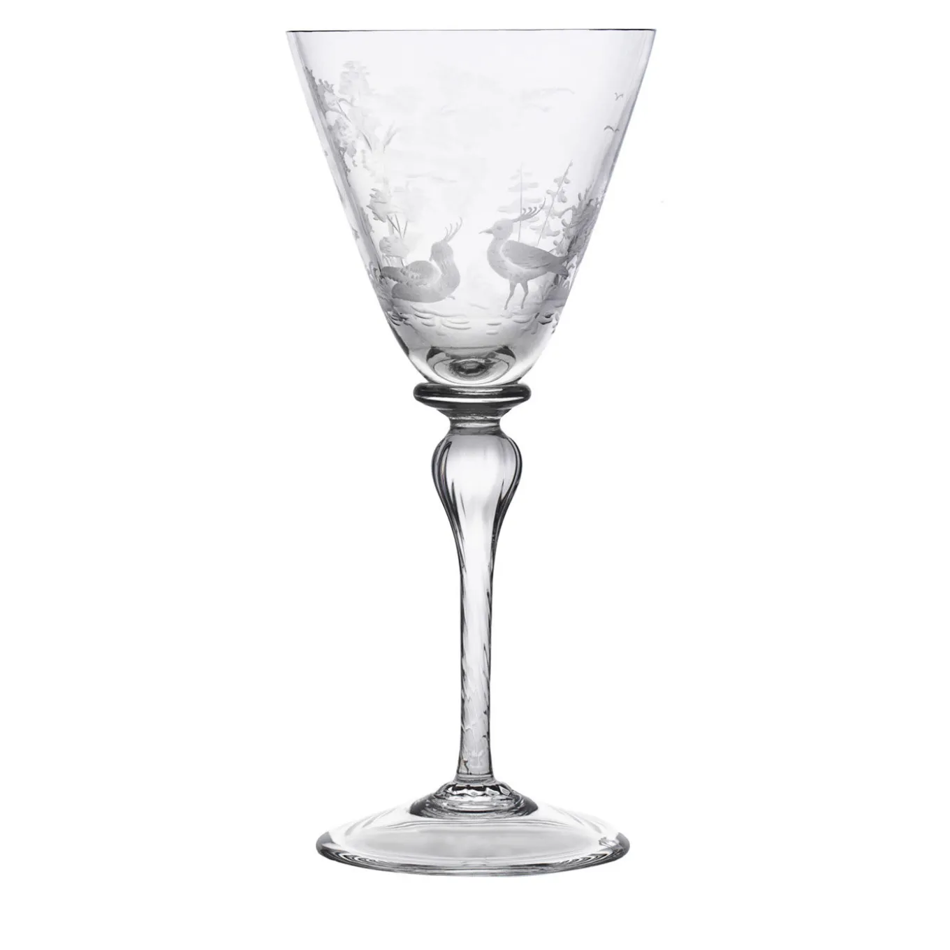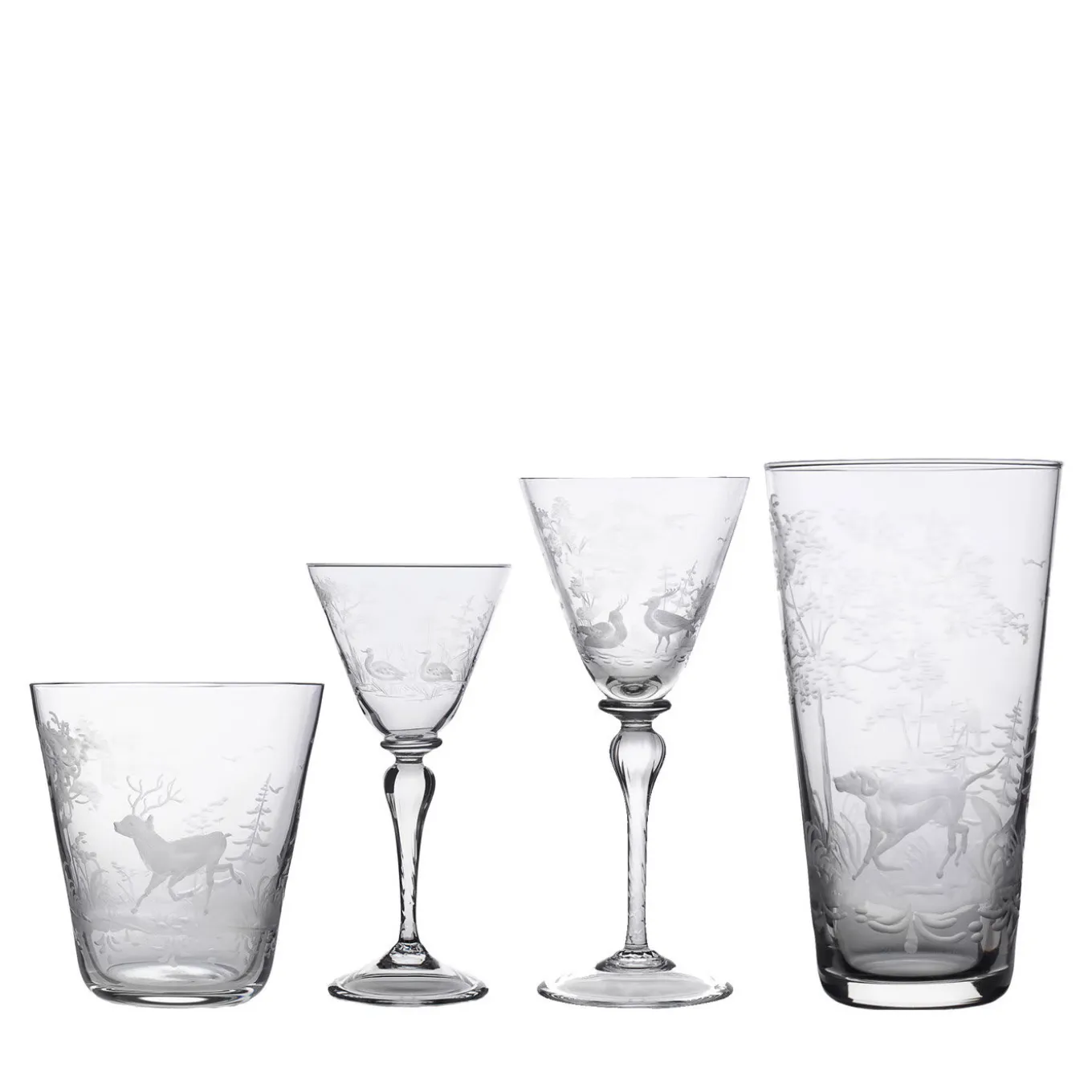 Set celebrativo di bicchieri in cristallo raffiguranti una classica campagna italiana, incisi in modo impeccabile dagli esperti artigiani della fiorentina Moleria Locchi. Il set è composto da un bicchiere da vino rosso, un bicchiere da vino bianco, un bicchiere da acqua e un flute da champagne.