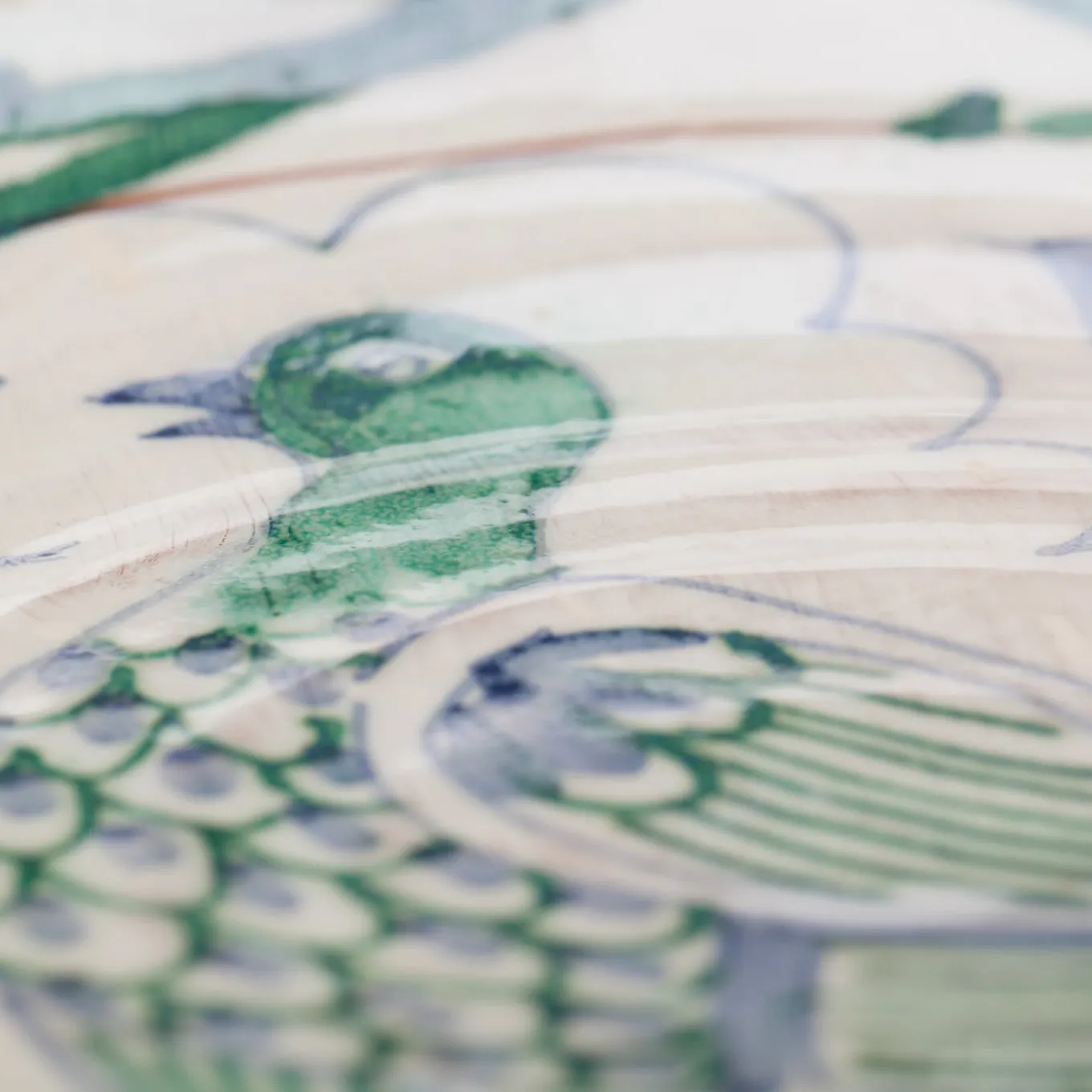 Questi eleganti piatti sono interamente realizzati a mano dagli abili artigiani di Nuove Forme sia nella modellazione dell’argilla, la terra rossa tipicamente mediterranea, sia nella sua decorazione. La decorazione dipinta è una moderna reinterpretazione dei disegni classici ispirati ai pavoni, qui presenti al centro di ogni piatto. Questo set, che fa parte della Collezione Pavone, comprende 4 piatti adatti a secondi piatti.