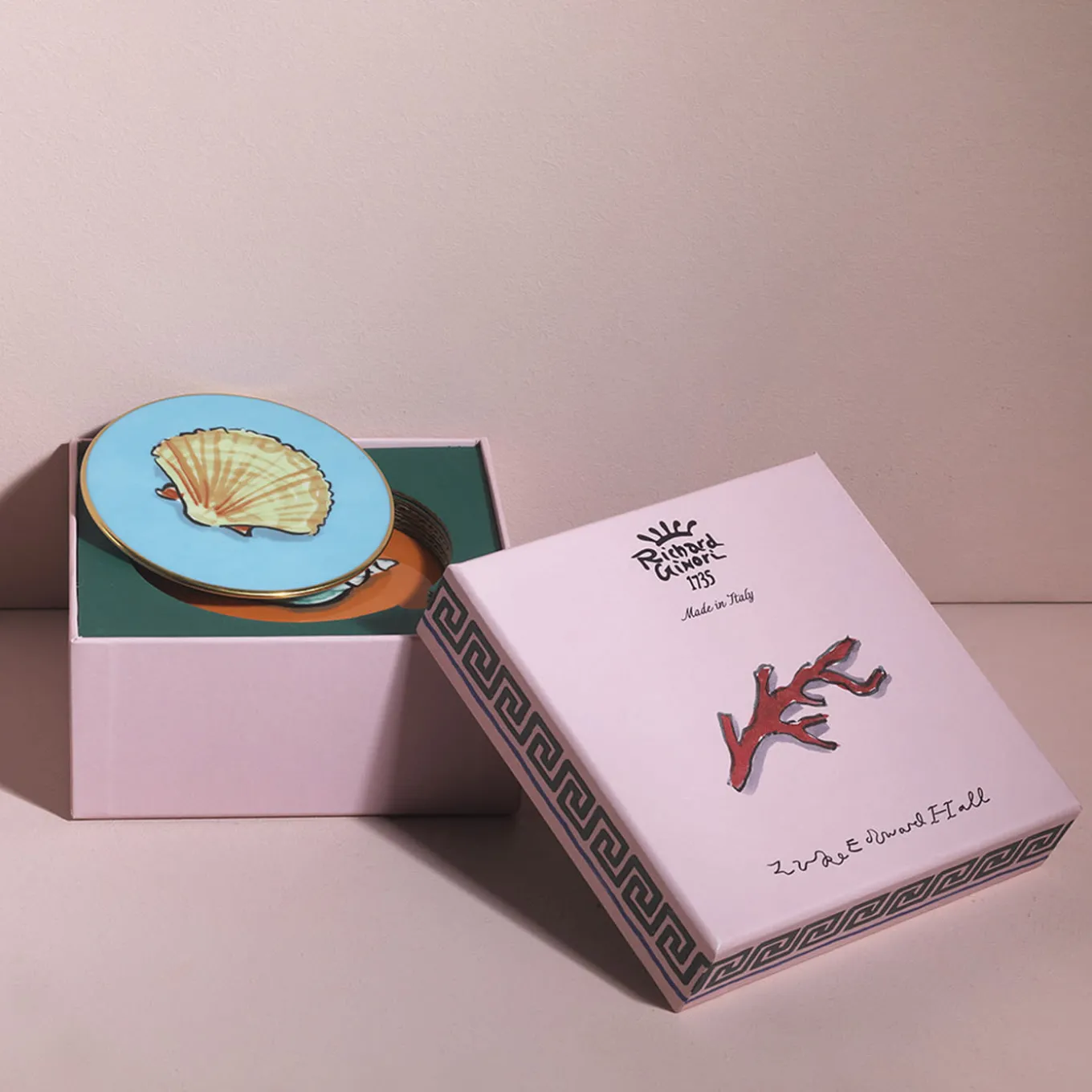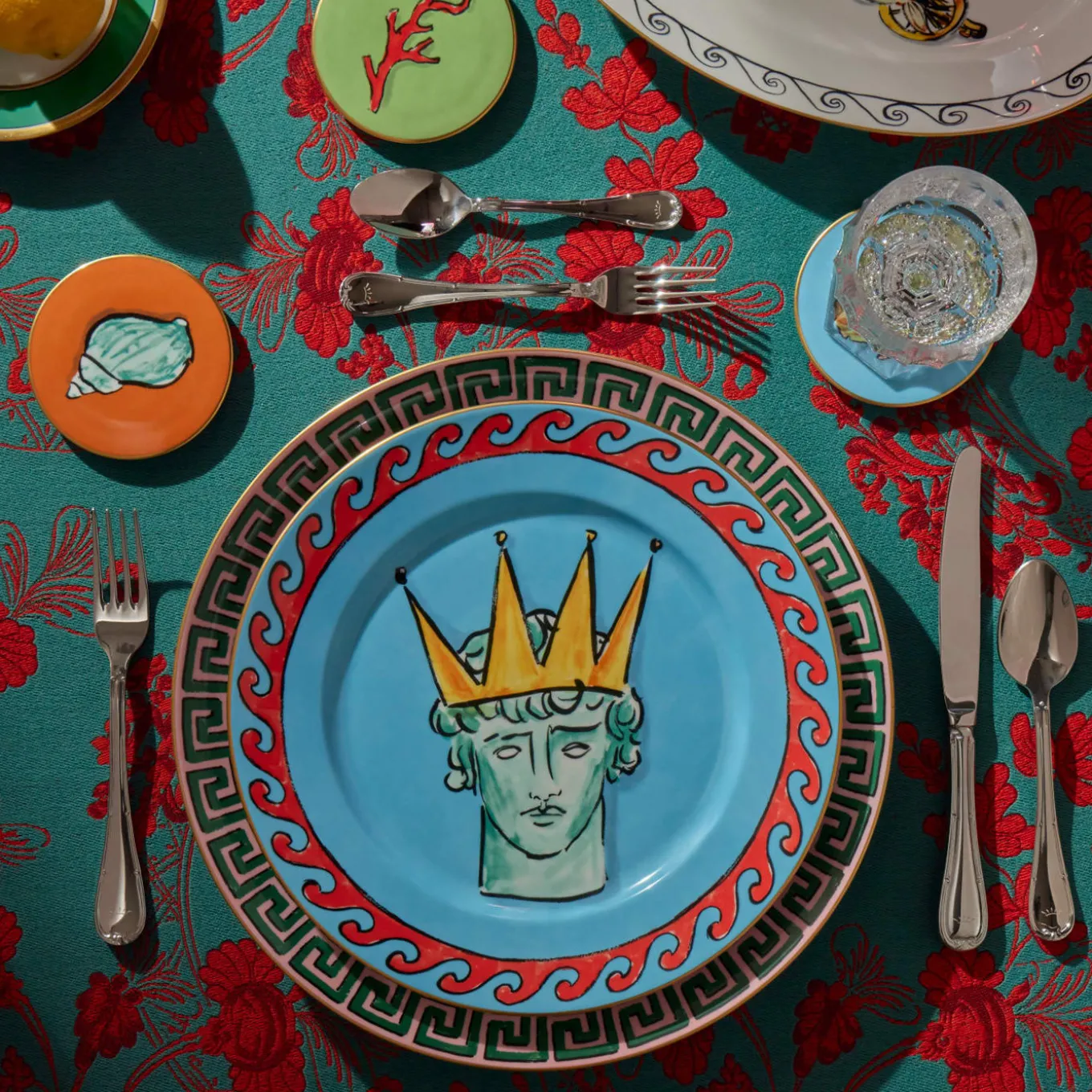 Ispirato dall’amore di Luke Edward Hall per la mitologia greco-romana, questo set di quattro audaci sottobicchieri multicolore è realizzato in pura porcellana e decorato a mano. Il diametro di ogni sottobicchiere misura 10 cm. Con la collezione Il Viaggio di Nettuno, Ginori 1735 reinterpreta la tavola in chiave moderna con oggetti dal design unico, vere e proprie installazioni artistiche.
