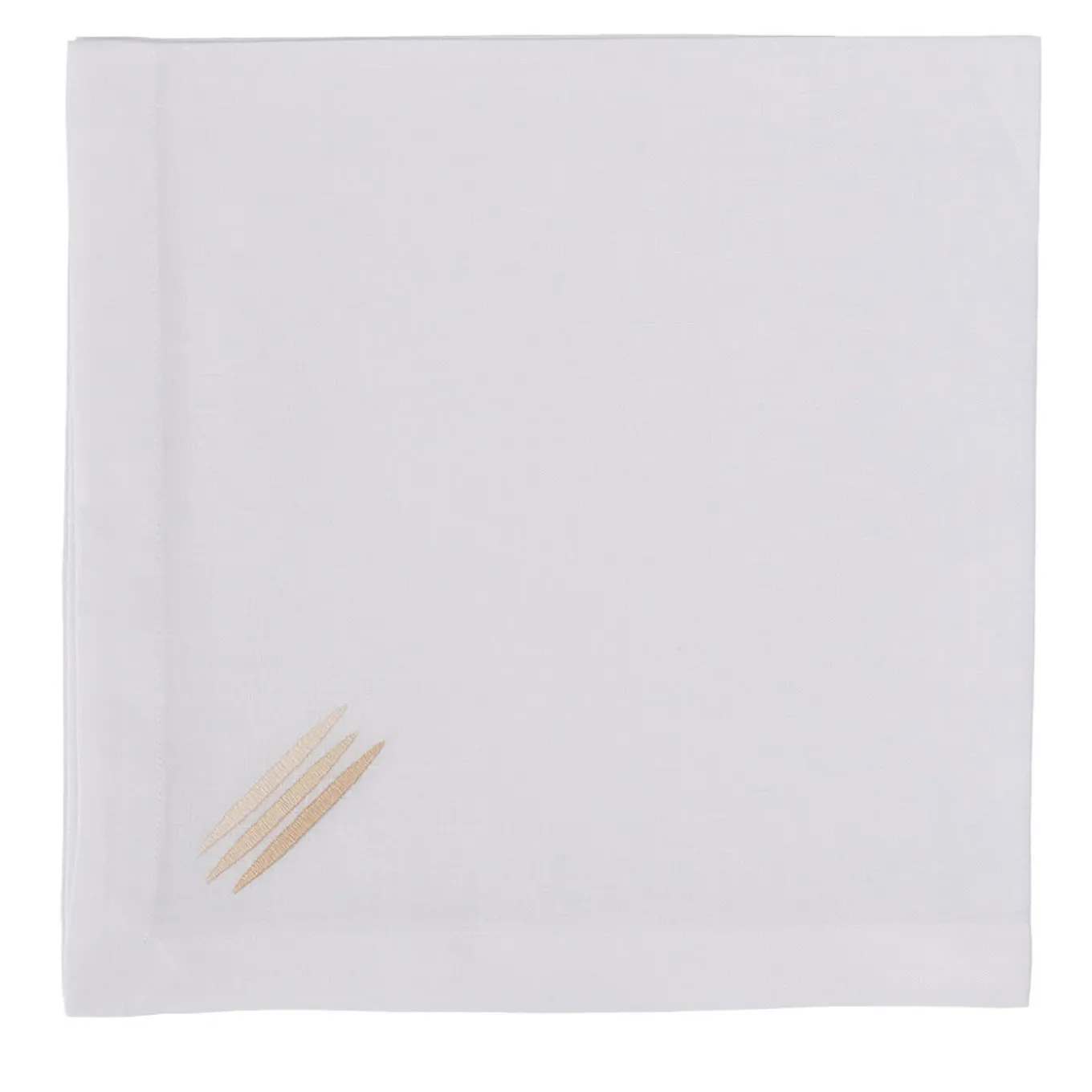 Un meraviglioso ricamo fatto a mano in tre diverse tonalità di beige esalta il design raffinato di questo set di quattro tovaglioli, un complemento esclusivo e sofisticato per una tavola elegantemente apparecchiata per un giorno speciale. Questo squisito set è abilmente realizzato a mano con il più pregiato lino bianco.