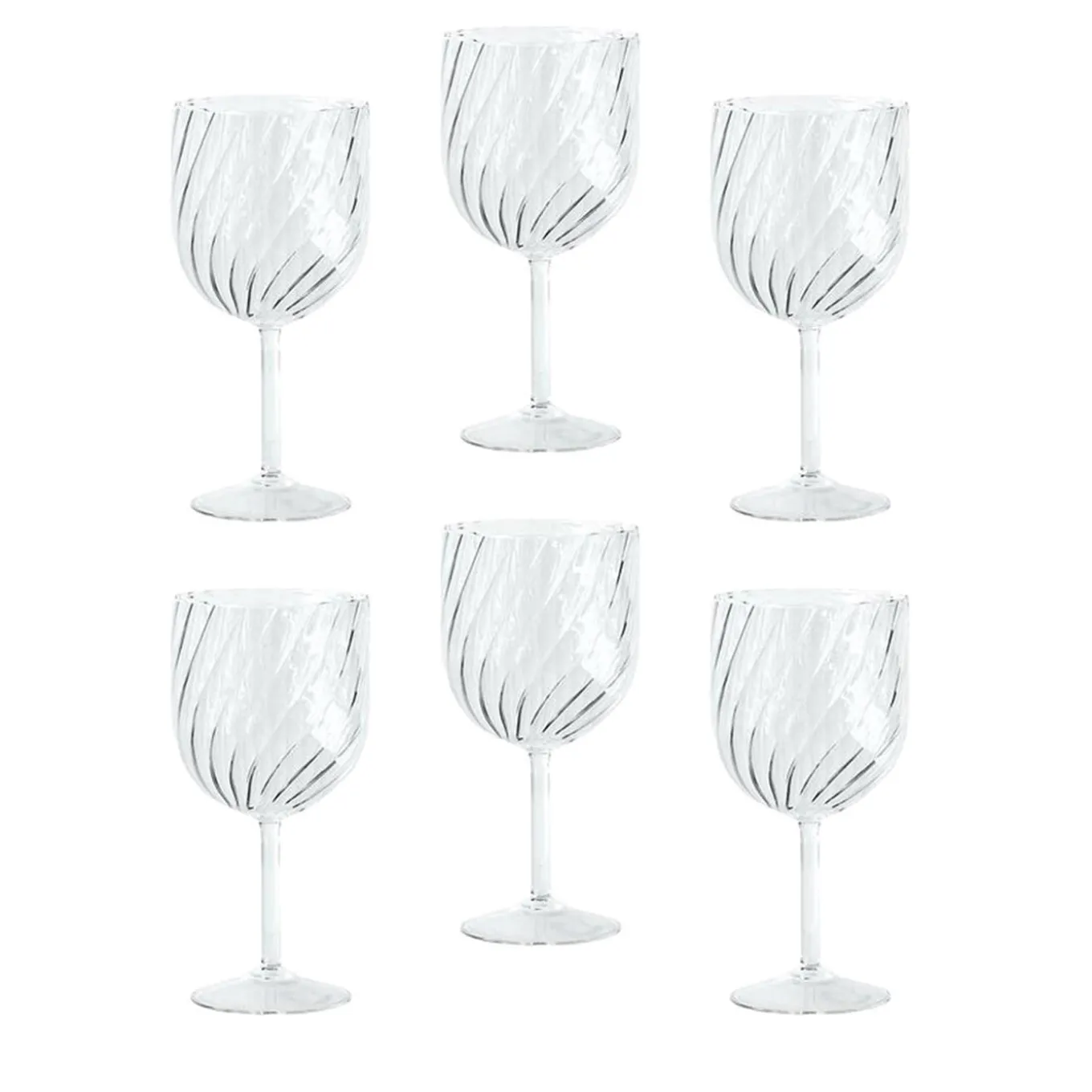 Questi sei bicchieri non sono solo decorativi ma anche “tecnologici”, con linee interne che aumentano la superficie di contatto con il vino, aumentandone l’ossigenazione. Sono tutti creati in vetro soffiato lavorato a mano.