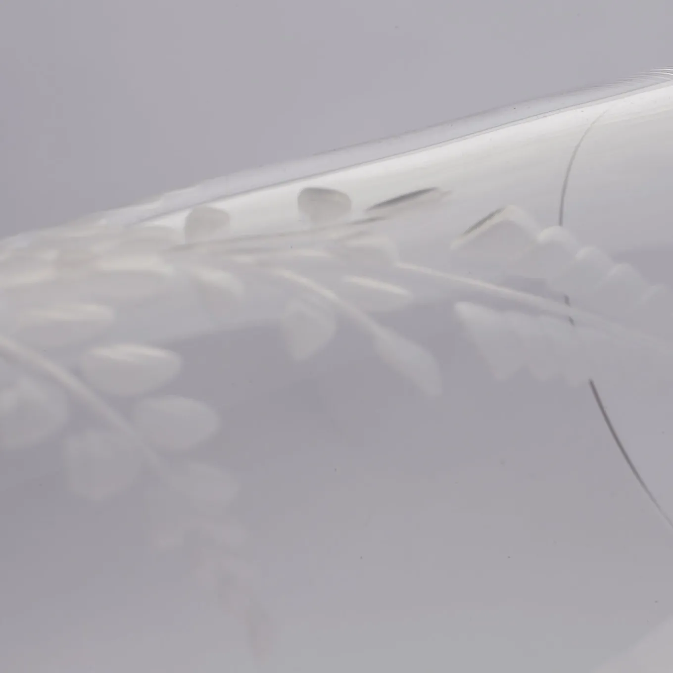 Questo squisito set di flute da champagne vanta una splendida decorazione chiamata “ramo dell’amicizia”. Un motivo tradizionale della cittadina di Altare, in Liguria, dove lavora la maestra artigiana Vanessa Cavallaro. Questo motivo floreale, reso in modo squisito nei dettagli e nella consistenza, raffigura un mazzo di fiori di nontiscordardime. Questa affascinante decorazione è stata incisa sul vetro con la rotella e abbellisce la coppa allungata del flute, che ha una capacità di 210 ml.