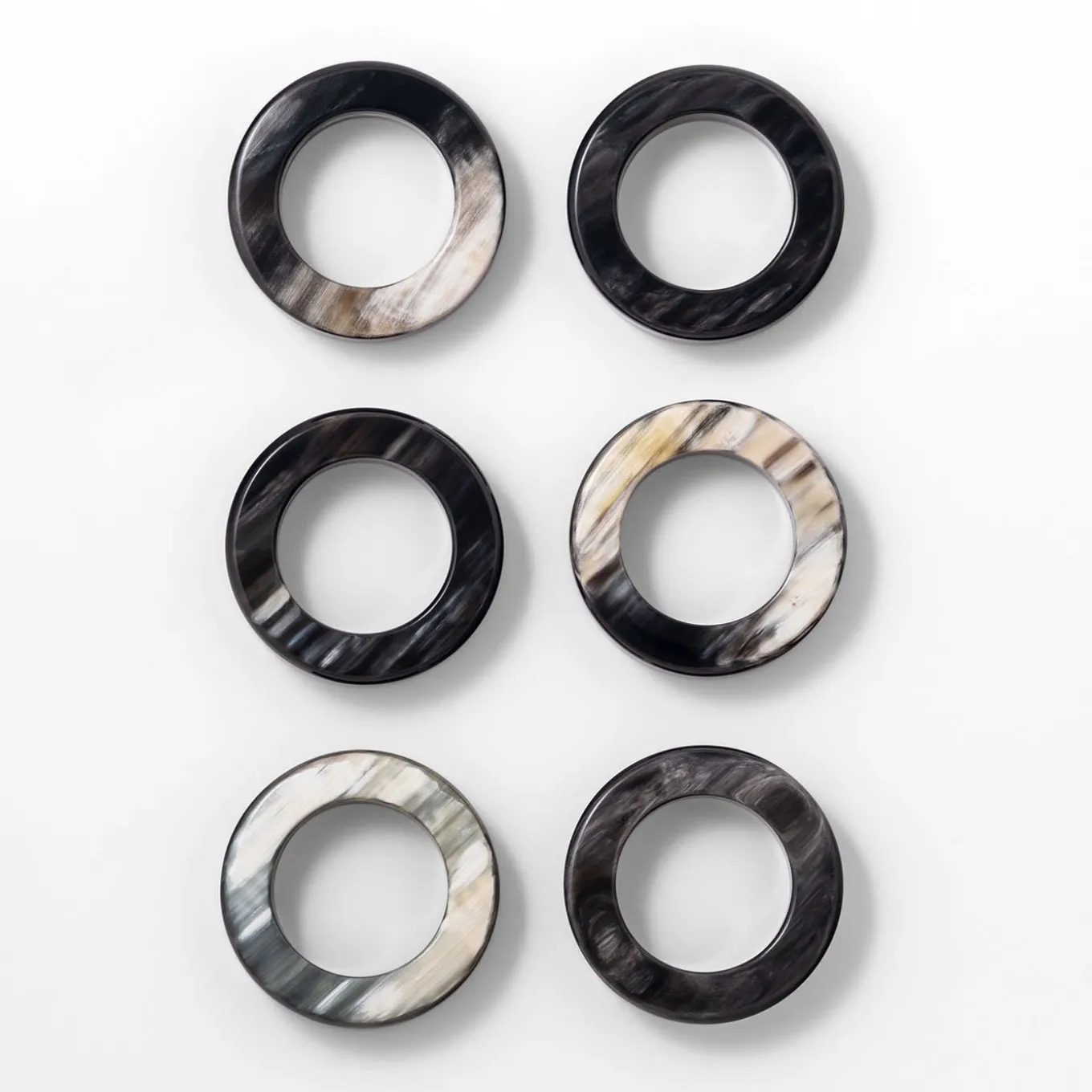 Meticolosamente lavorato a mano da maestri artigiani, il sublime corno nero è modellato in delicati anelli che esaltano il fascino ipnotico dei colori e delle striature naturali. Rifinito con cera, il set viene consegnato in una scatola fatta a mano con interno imbottito e foderato di raso, perfetto per essere conservato. A causa della natura del materiale del prodotto, ogni anello può presentare una colorazione leggermente diversa da quella visibile nelle immagini. Fa parte della Collezione Weaving.