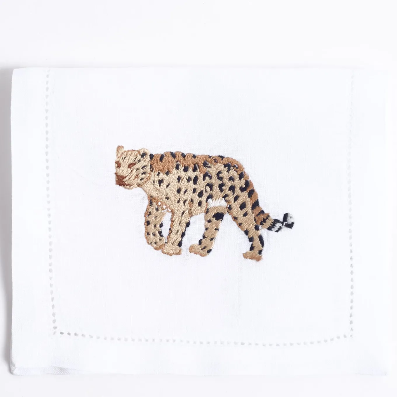 Questo set di 6 tovagliette rettangolari ricamate, ciascuna delle quali misura 15×26 cm, porta lo spirito della savana africana su ogni tavola. Caratterizzate da eleganti disegni di elefanti, leoni e giraffe, queste tovagliette sono realizzate in lussuoso lino italiano. Aggiungono un tocco di bellezza selvaggia a qualsiasi ambiente, perfette per l’arredamento a tema safari o come regalo unico per gli amanti della fauna selvatica. Ogni pezzo riflette la maestria artigianale e lo stile senza tempo della Maison Alia.