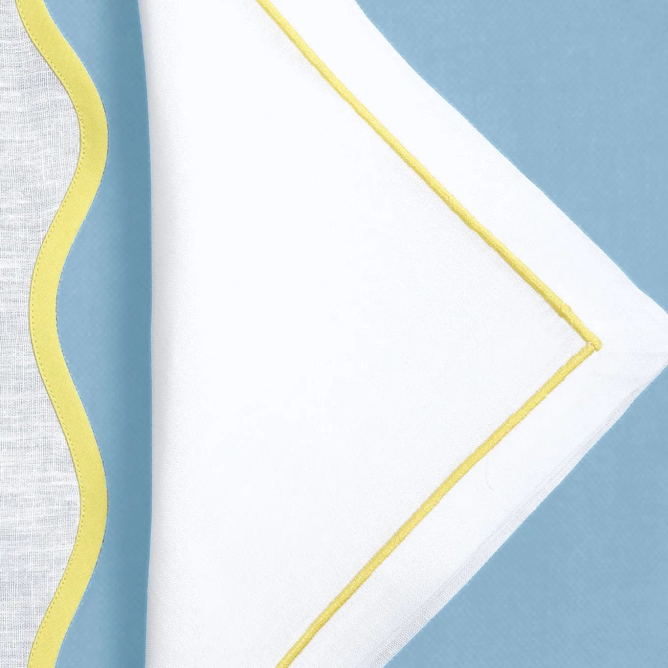 Il set di tovaglietta e tovagliolo giallo e bianco arricchisce l’esperienza culinaria. Questo elegante set comprende una tovaglietta rettangolare (40×50 cm) e un tovagliolo coordinato (45×45 cm), entrambi ricamati con un classico disegno blu e bianco. La tovaglietta presenta un bordo blu ondulato che aggiunge un tocco di eleganza e fascino. Resistente e di facile manutenzione, il set è perfetto per l’uso quotidiano o per le occasioni speciali. Il tessuto di base è 100% lino e il filo è 100% cotone.
