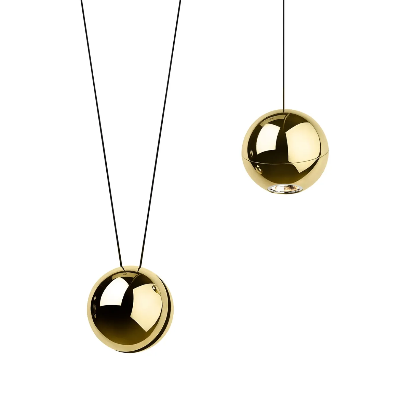 Sfere – Lampada a sospensione singola Una lampada a sospensione con una libera interpretazione dello spazio, dove quattro sfere in ottone, forme archetipiche ed elementari, possono raggiungere varie configurazioni, in un equilibrio di contrappesi dove i cablaggi sono a vista, e la luce che proviene con un po’ di mistero dalle varie sfere si espande o si concentra a seconda del posizionamento delle singole sorgenti. Dettagli: rosone da soffitto diam. 25 cm, sfere diam. 12 cm, cavo 5 m, led incluso.