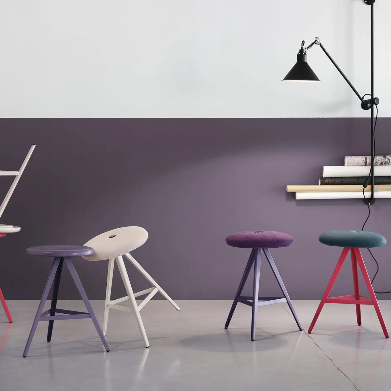 Pratico e funzionale, questo sgabello disegnato da Emilio Nanni completerà in modo ideale gli spazi contract o residenziali se accostato ad altri di colori diversi. Caratterizzato da una tonalità rosa cipria che abbina la struttura in metallo alla seduta in frassino massiccio rivestita in tessuto (finitura: cat. D Camira Era CSE19), poggia su un accattivante treppiede arricchito da elementi orizzontali che fungono da poggiapiedi. Personalizzabile nel colore su richiesta.
