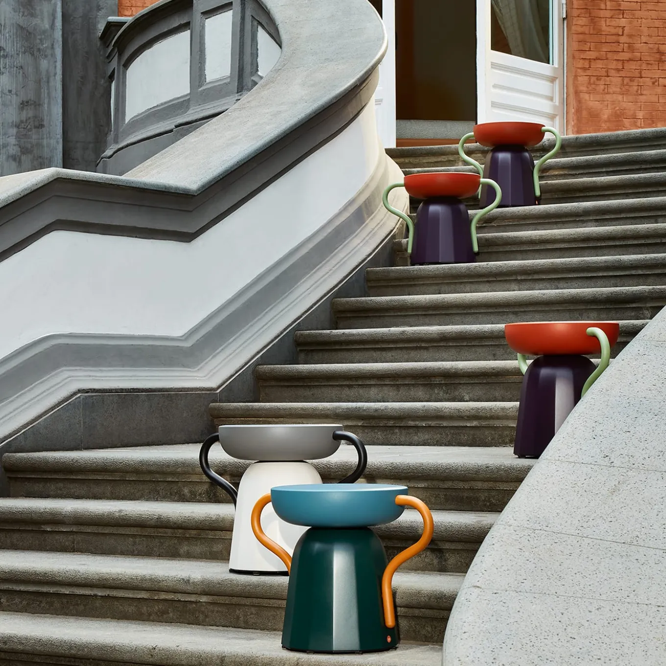 Allié è un design due in uno, uno sgabello e un tavolino condensati in un piccolo oggetto di grande carattere. Un totem dall’estetica audace, con le mani ben appoggiate sui fianchi. Interamente stampato in poliuretano espanso, la base e il piano sono collegati tra loro da due maniglie in metallo. Il materiale opaco del corpo principale contrasta con la finitura metallica delle maniglie, mentre la palette di colori contemporanei sottolinea lo spirito divertente e giocoso di un design adatto all’interno e all’esterno.