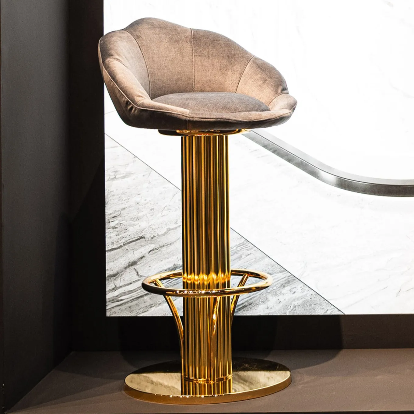 Sgabello da Bar Loto in Ottone Dorato