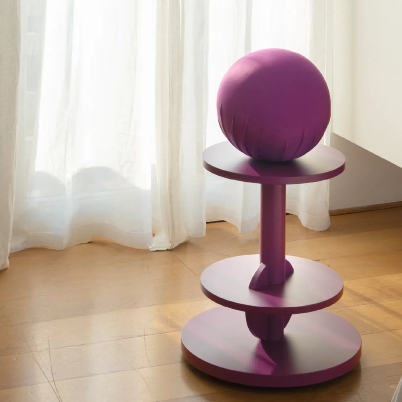 Questo divertente e allegro sgabello viola della designer Anna Polisano si ispira al pedone del gioco degli scacchi. Caratterizzato da una struttura minimalista in legno massiccio sormontata da una sfera in poliuretano imbottita, questo delizioso pezzo può essere abbinato ad altri elementi della stessa collezione Matto per un tocco chic in un salotto o in un bar contemporaneo.