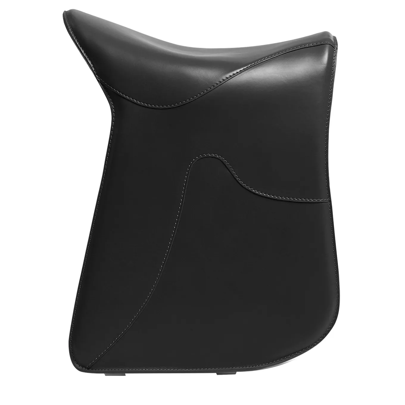 Questo sgabello, che riprende in modo artistico le selle dei cavalli, è stato progettato per offrire una seduta confortevole e al tempo stesso svolgere una preziosa funzione evocativa. La sua struttura a slitta in acciaio curvato è lussuosamente avvolta da un rivestimento nero in pelle pieno fiore, il cui aspetto liscio è interrotto solo da dettagli di cucitura ondulati abilmente cuciti a mano. Progettato per favorire una postura corretta, sarà un’aggiunta sfarzosa a una scrivania e a un ufficio moderni.
