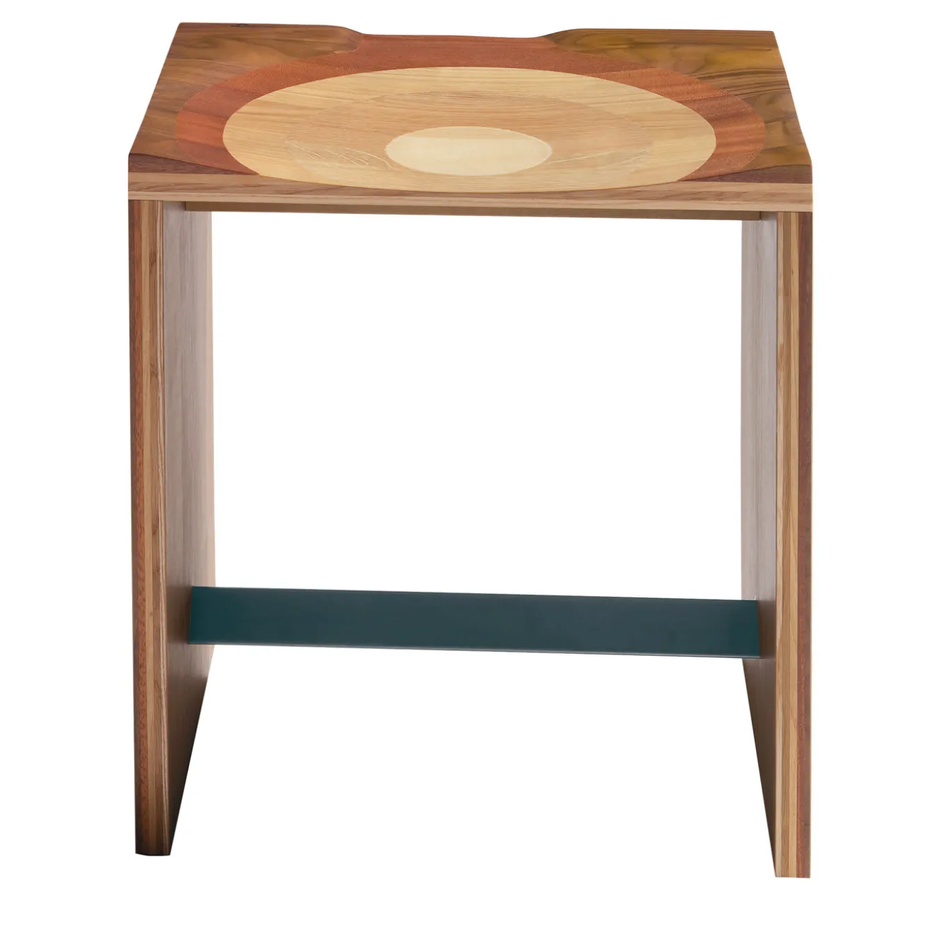 Sofisticato e unico, questo sgabello disegnato da Toyo Ito è il vincitore del Premio Compasso d’Oro 2004. La seduta, interamente rifinita a mano, è realizzata in compensato con cinque diversi tipi di legno (noce, mogano, ciliegio, quercia e frassino) e vanta una texture morbida in cui le diverse essenze confluiscono l’una nell’altra. Il poggiapiedi è in alluminio anodizzato e aggiunge al pezzo un profilo funzionale ed essenziale.
