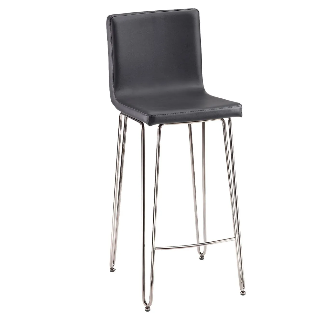 Dal design moderno e distintivo, che conferisce agli ambienti contemporanei un carattere pulito e iconico, questo sgabello presenta linee eleganti realizzate con materiali di prima qualità. Poggia su gambe cromate ed è rivestito in pelle nera. Questo design è interamente personalizzabile; si prega di consultare il Concierge per ulteriori dettagli e opzioni.