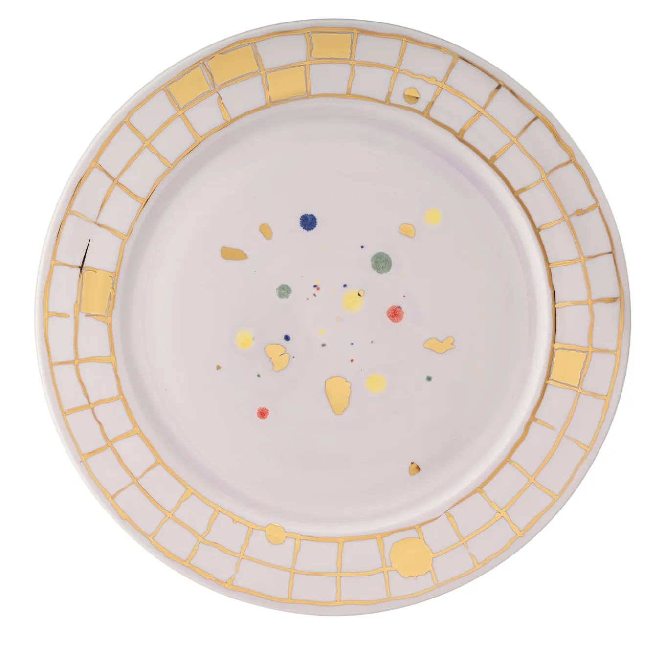 Questo piatto Charger della collezione Florida, lanciata nel 2023, cattura splendidamente l’essenza del lusso e dell’allegria. Ispirato al carattere vivace della Florida, questo pezzo è caratterizzato da un tenue color lavanda Islamorada che evoca la tranquillità dei suoi tramonti e delle sue spiagge serene. È ornato da un centro leggermente colorato, giocosamente cosparso di puntini multicolori, che aggiungono un tocco stravagante. Il bordo elegantemente rifinito, riccamente decorato con una rete dorata, ne esalta la raffinatezza.