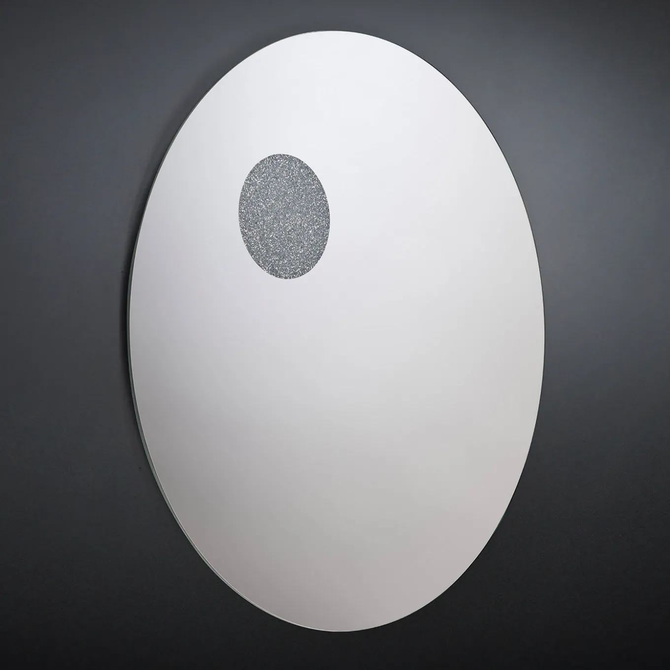 Ispirandosi al sistema solare, il designer Giorgio Ragazzini ha creato una serie di specchi eterei che evocano immagini di paesaggi lontani. In questo pezzo minimalista, la superficie rotonda e liscia del vetro specchiato non è contenuta da una cornice, evocando lo spazio aperto, mentre un punto rotondo con una finitura strutturata evoca la silhouette del nostro pianeta visto da lontano.