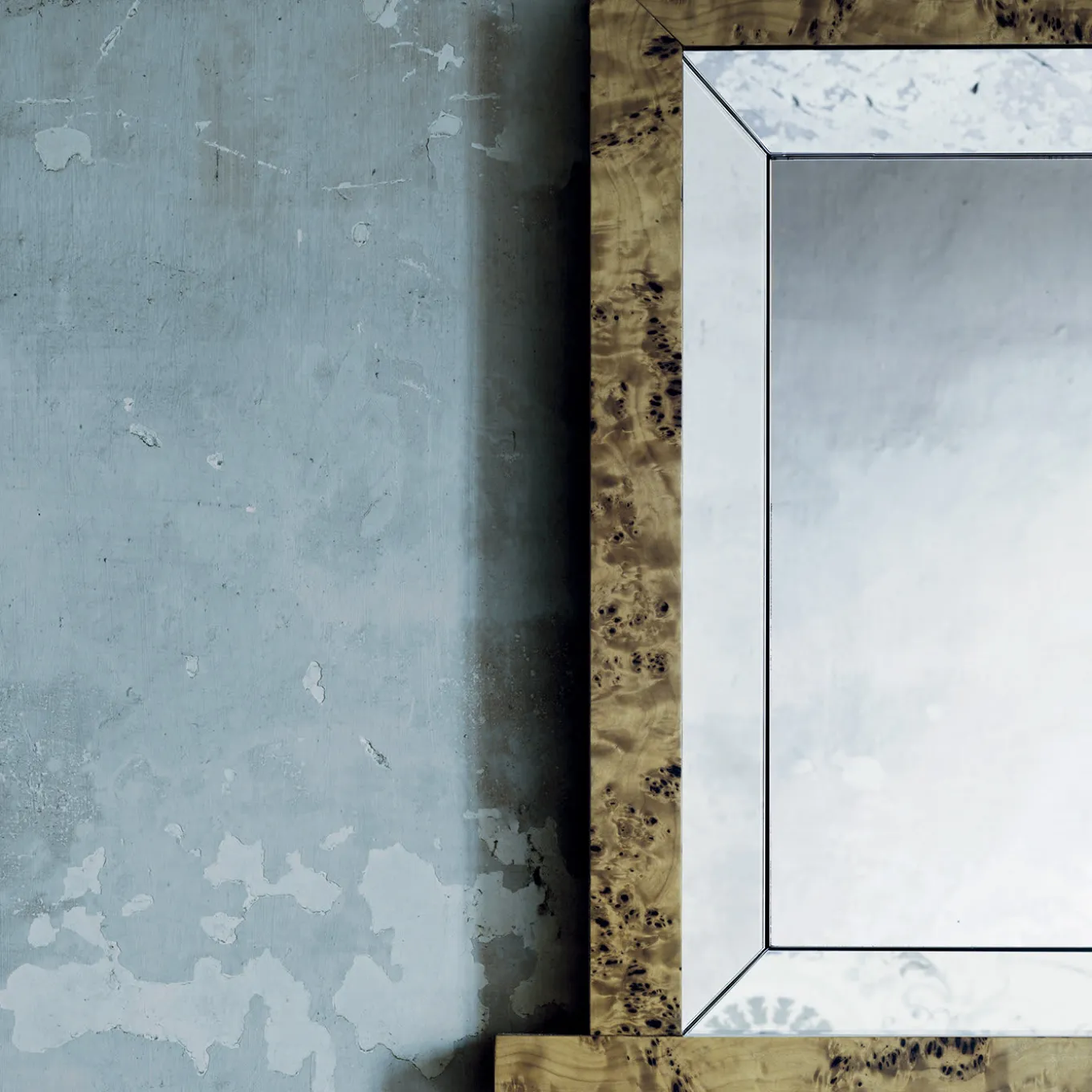 Catturando l’eleganza senza tempo delle forme semplici, questo specchio di presenta una raffinata cornice in radica popolare con un lato esteso alla base. Lo specchio interno smussato aggiunge dimensione al pezzo, esaltando il contrasto con la cornice dai toni caldi.
