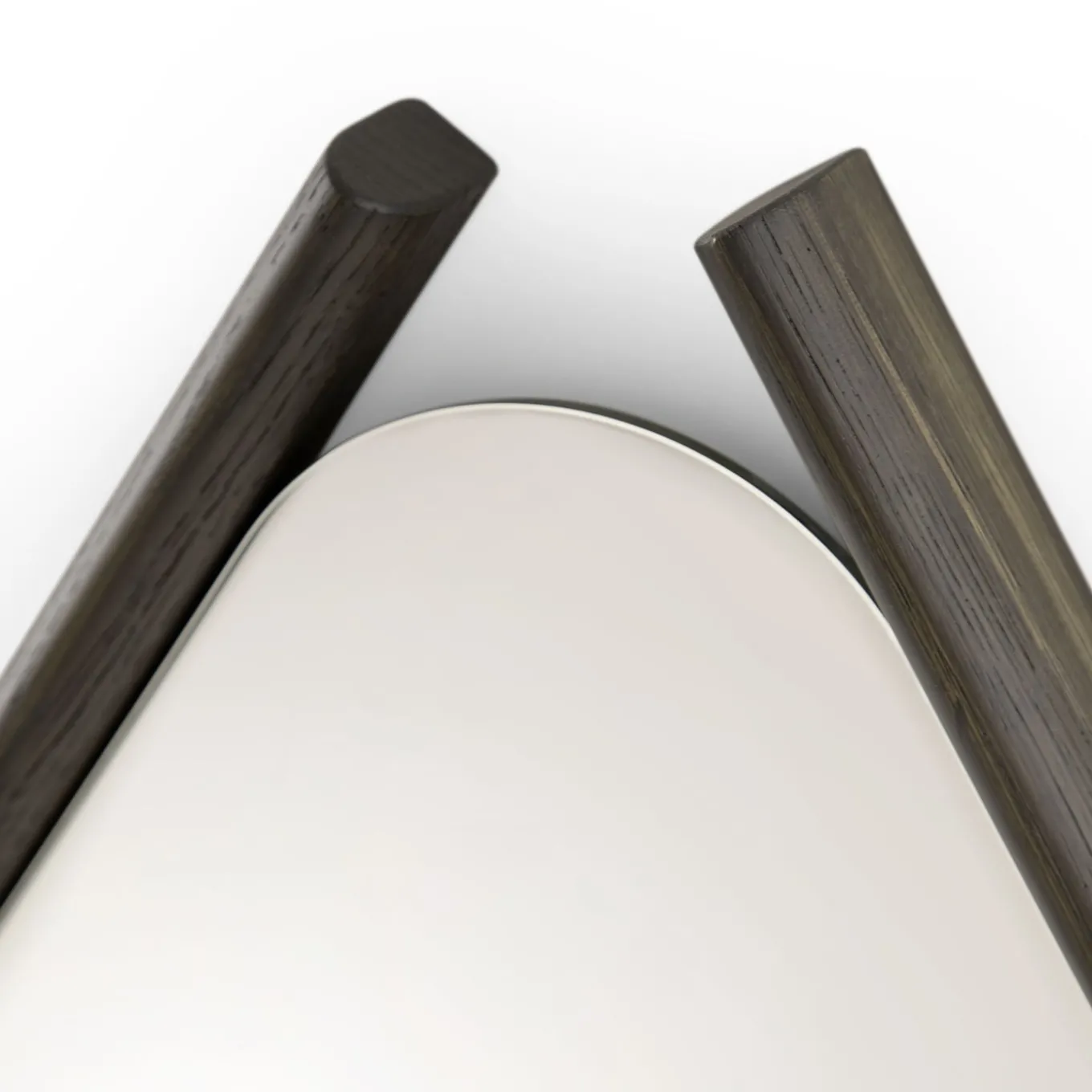 Squisitamente realizzato in rovere massiccio con un meticoloso motivo di giunzione a pettine, questo specchio di medie dimensioni affascina con il suo design a forma di occhio e la sua finitura argentata scintillante. La sua forma unica non solo riflette elegantemente la luce, ma aggiunge anche un tocco intrigante a qualsiasi interno. Perfetto per salotti moderni, uffici eleganti o boutique di lusso, questo specchio è una testimonianza di abilità artigianale ed estetica contemporanea, che promette di valorizzare qualsiasi spazio con la sua miscela di arte ed eleganza funzionale.