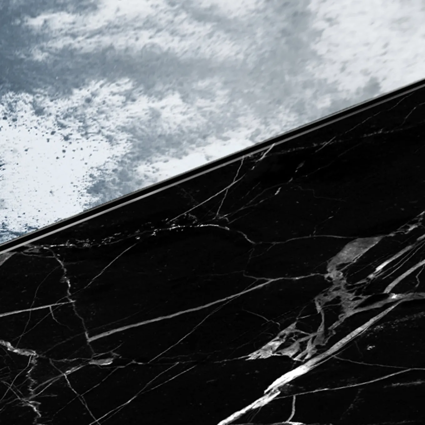 Un pezzo lunatico per spazi contemporanei, lo specchio Itinera Res Lunare V è realizzato in collaborazione con la vetreria Antique Mirror di Siena. Su una base in acciaio inossidabile, frammenti di vetro incorniciano un pezzo di marmo Marquinia chic, caratterizzato da venature bianche incontaminate su un nero vellutato. Non esistono due pezzi uguali.