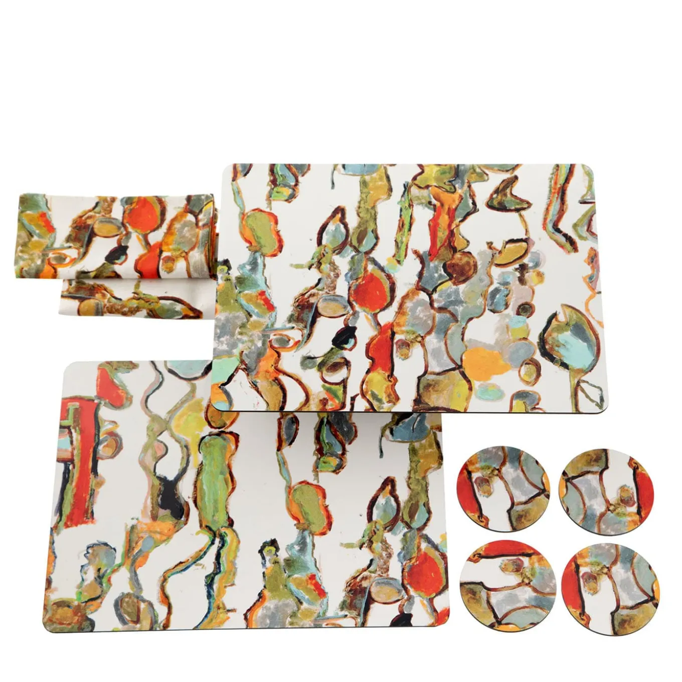 L’opera d’arte originale di Luisa Longo è stata trasferita digitalmente con massimo effetto tridimensionale su fibra di legno rigida laccata extra-lucida con bordi leggermente arrotondati. Ogni tappetino è diverso dall’altro, tagliato dalla stessa opera d’arte per creare una tavola preziosa e artistica. Il retro è in sughero naturale antiscivolo. Su richiesta sono disponibili tovaglioli in 100% lino con lo stesso motivo e sottobicchieri coordinati.