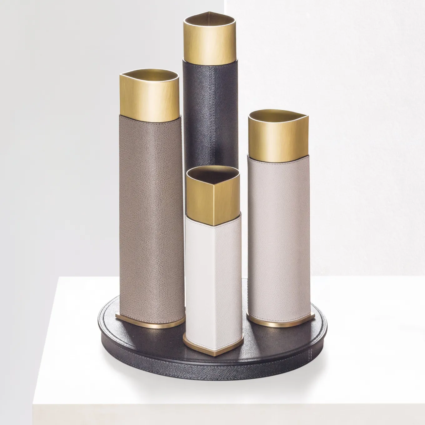 Parte della serie Drop, questa base è un complemento perfetto per il vaso magnetico Drop. Grazie alla sua anima in ferro, conferisce stabilità al vaso e gli fa da squisita cornice. La sua silhouette rotonda è in metallo rivestito in pelle pregiata. Il rivestimento può essere personalizzato nel colore e nel tipo, scegliendo tra le numerose opzioni offerte dal marchio. Moderno e sofisticato, questo supporto completerà il look dei vasi Drop, da utilizzare in qualsiasi stanza della casa.