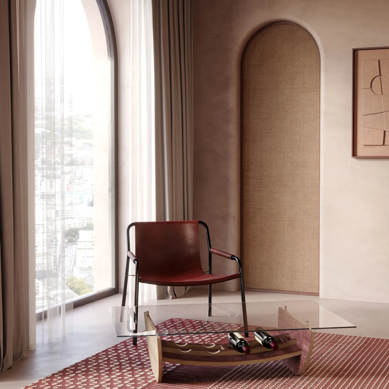 Il tavolino Canai incarna un approccio audace che pone la rarità in primo piano. Le sue gambe semicircolari, ricavate da coperchi di botti di vino, incorporano la struttura concava delle doghe, mostrando con orgoglio la bellezza intrinseca dell’invecchiamento del vino sul rovere e fornendo al contempo un solido supporto per il piano in vetro. Ogni Canai è un capolavoro unico, i cui colori e segni si evolvono organicamente grazie all’interazione naturale tra rovere e vino, sfidando definizioni preconcette.
