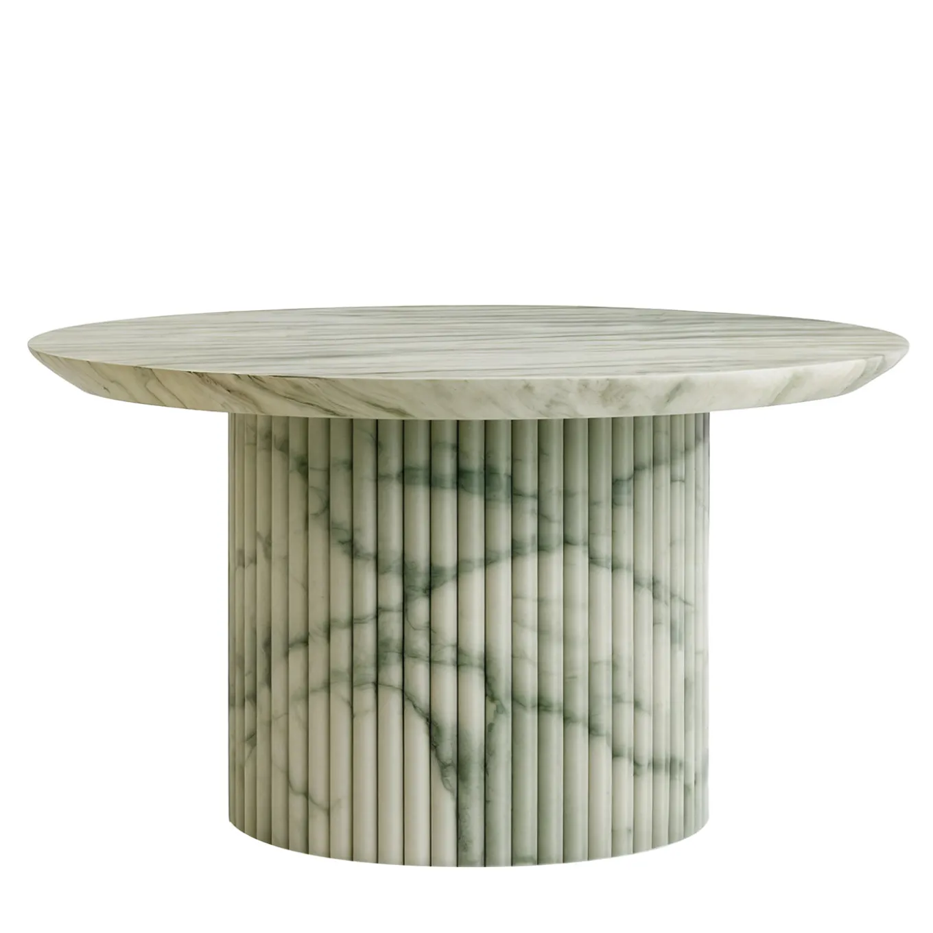 Un raffinato tavolino da caffè con un piano circolare e una base cilindrica con scanalature verticali. Il design mette in mostra un’armoniosa fusione di linee organiche e toni ricchi ispirati dalla natura e dalla femminilità, evocando un’estetica elegante e contemporanea. Parte della collezione Somnium, evidenzia palette di colori vividi e distintivi attraverso forme morbide e fluide.