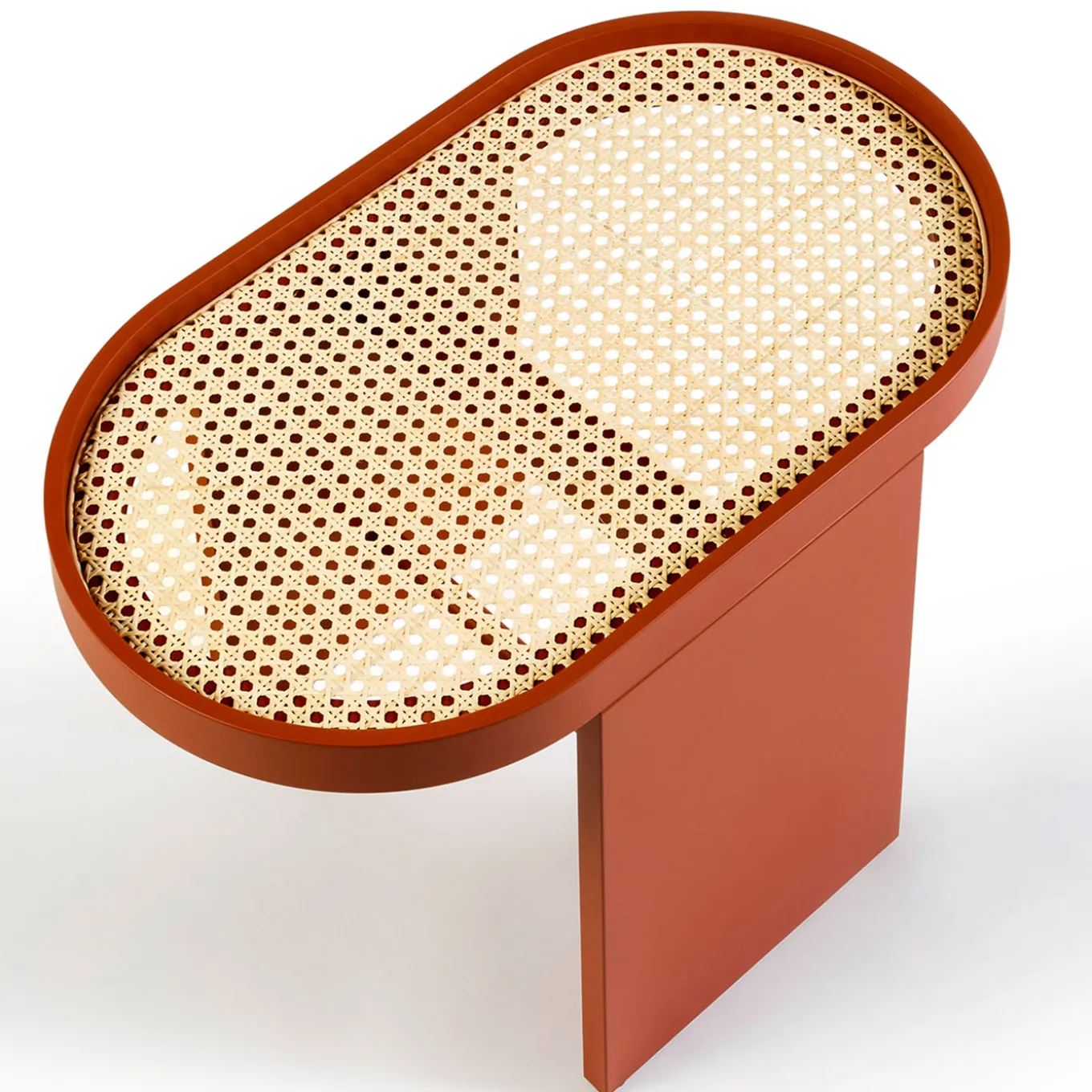 Questo tavolino disegnato da Patricia Urquiola unisce eleganza e funzionalità. Realizzato in legno con una particolare laccatura cangiante in un moderno color rame, questo tavolino bilancia un piano ovale con superficie in canna naturale tra due imponenti pannelli laterali rettangolari. L’asta centrale inferiore aggiunge stabilità a questo pezzo esclusivo che viene realizzato su ordinazione; per ulteriori dettagli e prezzi, contattare il Concierge.