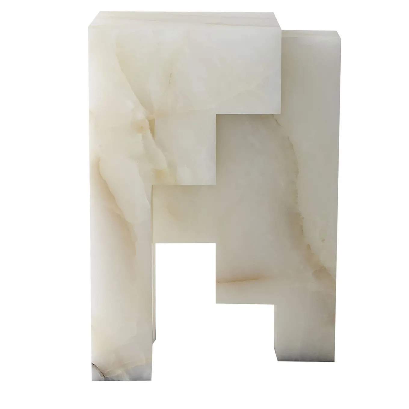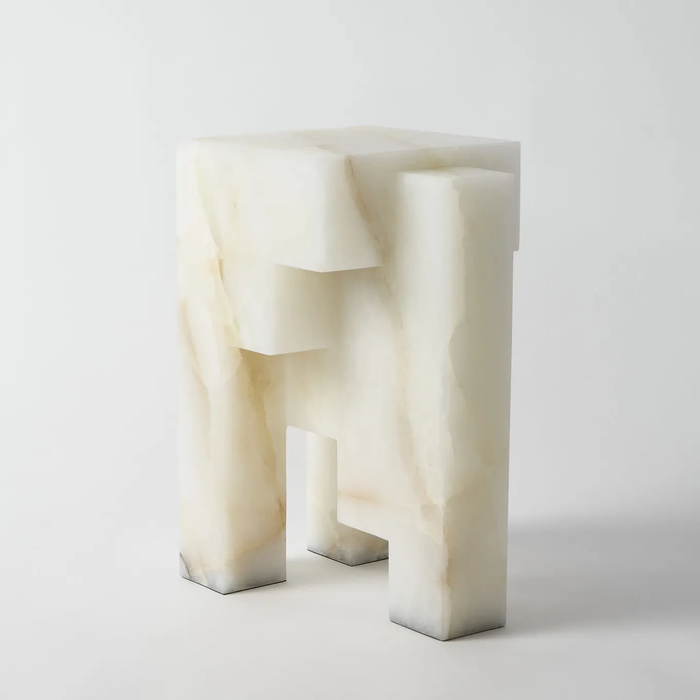 Realizzato in splendido onice bianco, il tavolino Los Tres Deseos ha una duplice funzione: sgabello e tavolino. Questo pezzo esemplifica una meticolosa lavorazione artigianale e un design innovativo, traendo ispirazione dall’estetica contemporanea. La sua forma scultorea enfatizza una presenza grafica audace, elevando qualsiasi spazio interno con la sua silhouette sorprendentemente elegante. Evidenziato dalla bellezza intrinseca del materiale, questo tavolino è stato progettato per mostrare le caratteristiche uniche dell’onice bianco, garantendo che ogni pezzo si distingua a sé stante. Il design racchiude una raffinata miscela di funzionalità e arte, che lo rende un’aggiunta eccezionale a un ambiente moderno.